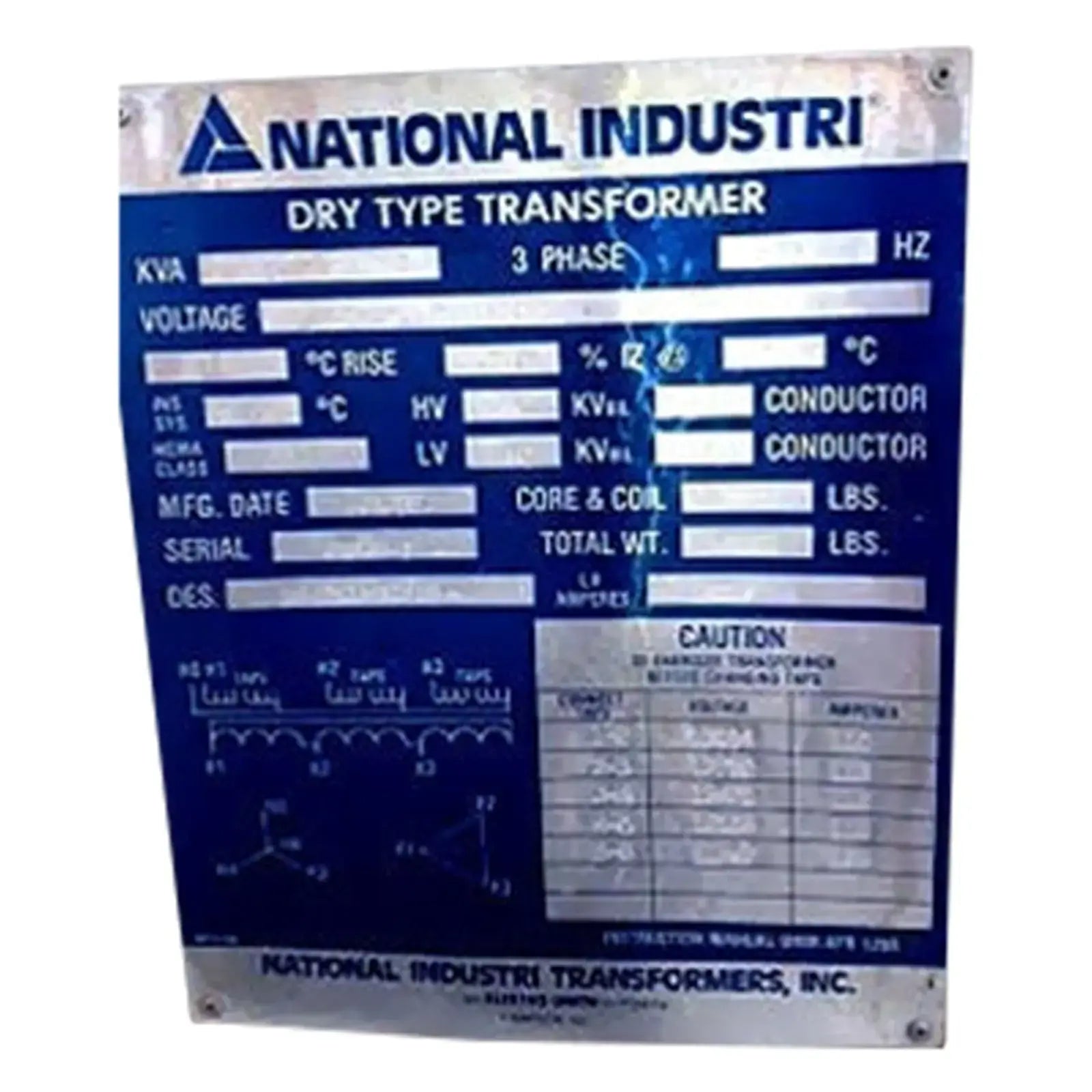 National Industries 2500 KVA Dry Type Transformer. S/N: 01819-1. Voltage 12,470/7,200-480A,Total Wt. 18,100 lbs. (1988)