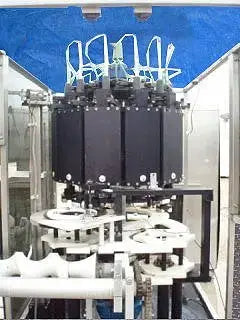 New England Machinery Inc. Rotary Plug Turret. Model: NERSOC. S/N: 7277. Turret cap size: 3 in. L x 2 in. W. Maximum aperture/clearance: 3 in. W x 6-1/2 in. H. Baldor Industrial Motor, 1-1/2 hp, 1760 rpm, 180 V, 7.7 amps. Regal Beloit Speed Reducer, 7.5 ratio, 234.66 rpm (final). Gast Vacuum Pump, Ref. No: 3067. Dayton Motor, 1 hp, 1725 rpm, 115/230 amps, 13.6/6.8 FLA, 60 Hz, single phase. Conveyor infeed/exit height: 36 in. Overall dimensions: 5 ft. L x 4 ft. 6 in. W x 6 ft. 3 in. H.