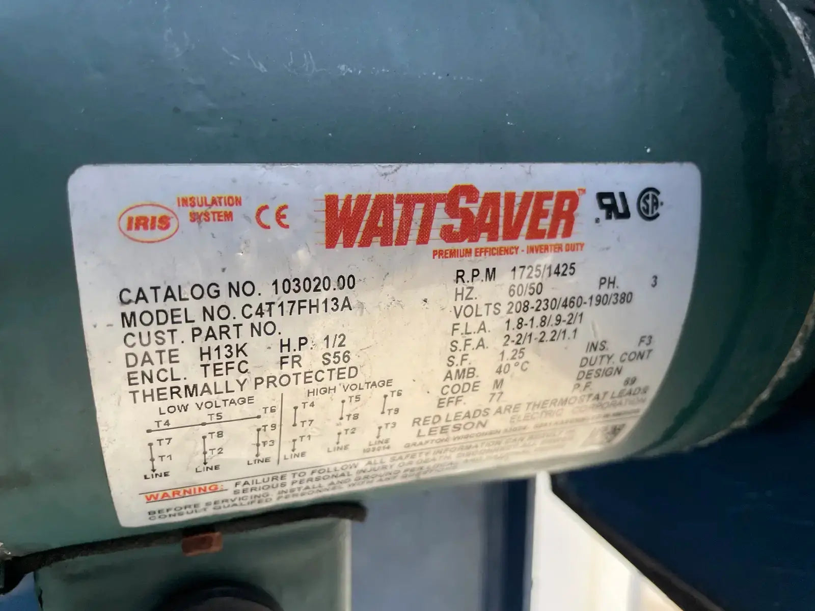 - If Multiple Motors, Motor Descriptions vs specs: (1) 1/2 HP Pump Motor. (1) 1/2 HP Drive Motor.