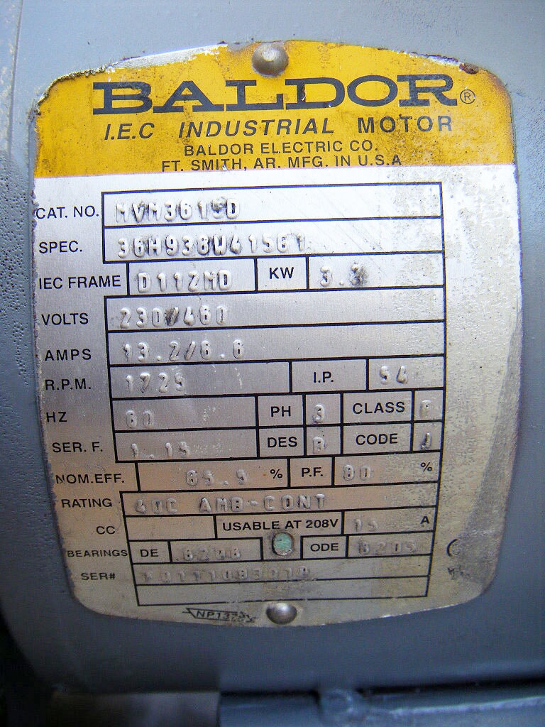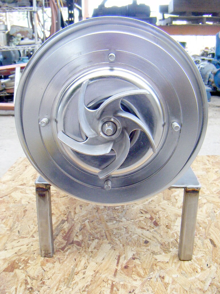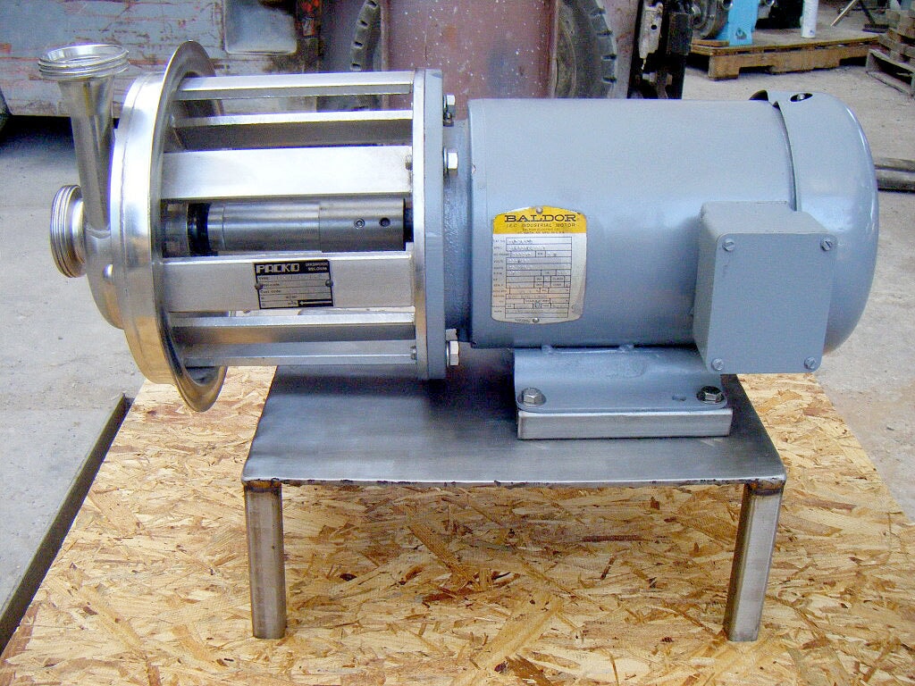 PACKO Centrifugal Pump. Type: SETFP2TA/32-125/BEL. No. 17928. Baldor motor: 3.2 kw, 1725 rpm, 230/460 v, 13.2/6.6 a, 60 Hz, 3 phase. (1) 5-1/2 in. dia. impeller. Inlets/outlets: (1) 3 in. ACME, (1) 2 in. ACME, (1) 1/2 in. MNPT. Overall dimensions: 2 ft. 1 in. L x 1 ft. 1 in. W x 1 ft. 6 in. H.