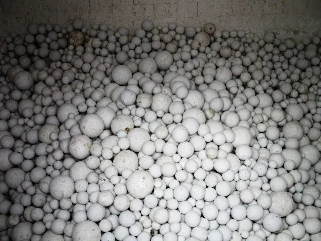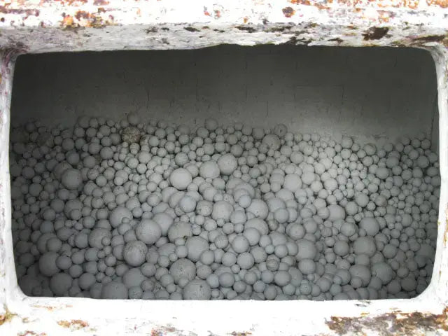 Patterson Industries Ball Mill. Approximate capacity: 369 gallons. Inside dimensions: 48 in diameter x 60 in. L. Arlcite (alumina media) charge at 50% ratio: 3038 lbs. Gallons of displacement at 50% volume: 122 balls. Constant grinding action is provided for in the Patterson Industries ball mill using porcelain balls as the grinding media with the surface area of each ball multiplying its effect. This mill features a high alumina brick lining with applications to include: chemicals, paints, coatings, and ceRam Industriesics industries where the reliability and uniformity of output tolerances must maintain consistency. This unit was in prior service with Crane Plumbing in their porcelain process line. Overall dimensions: 8 ft. 3 in. L x 6 ft. 3 in. W x 6 ft. 3 in. H.(ACN825).