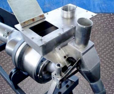 Patterson-Kelley Zig-Zag Continuous Blender. Nominal rating: 850-1000lbs. per hour at bulk density of 35lbs per cubic foot. Provides the precision of the P-K Twin-Shell Blender on a continuous basis. Produces precise, intimate blends of solids-solids, liquid-solids, and slurries. Short residence times ensure the gentle processing of materials. Continuous operation for high volume production. Engineered systems facilitate efficient feeding and discharging of material. Stainless steel blender features (3) side access doors. U.S. Motor, 1 hp, 1750 rpm, 208-230/460 V, 3.6/1.8 amps, 60 Hz, 3 phase. Sew Eurodrive Motor Drive, 14.08 ratio, 124.29 rpm (final). Inlets: (2) 3-1/2 in. dia. infeed inlets, (2) 3 in. dia. infeed inlets. Outlets: (1) 3 in. dia. discharge, (1) 8-1/2 in. dia. discharge. Overall dimensions: 9 ft. L x 33-1/2 in. W x 45-1/2 in. H.