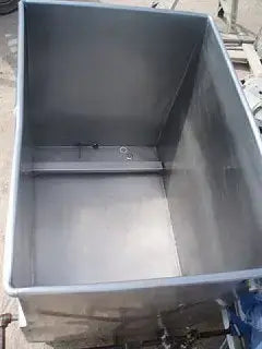 Paul Mueller Jacketed Cook/Cool Tank- 560 Gallon. Inside straight-wall dimensions: 5 ft. L x 3 ft. 6 in. w x 4 ft. 3-1/2 in. H. Inlets: (1) 1 in. dia. port (jacket), (1) 5 ft. L x 3 ft. 6 in. W product infeed. Outlets: (2) 1- 1/2 in. dia. FNPT fittings, (1) 1 in. dia. FNPT fitting, (1) 2 in. dia. S-line drain port, (1) 3/4 in. dia. port, (1) 1 in. dia. port (jacket). Overall dimensions: 6 ft. 2 in. L x 4 ft. 7 in. W x 5 ft. 3 in. H.