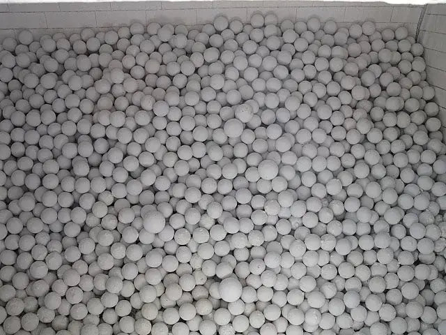 Paul O. Abbe Pebble Mill. Model: PM-3C. Total capacity: 480 gallons. Inside dimensions: 54 in diameter x 60 in. L. Alumina media charge at 50% ratio: 4430 lbs. Typical mill rpms: (wet) 21, (dry) 23. Using porcelain balls as the grinding media, the Paul O. Abbe ball mill features a proven tongue and groove high alumina brick lining with applications to include: chemicals, paints, coatings, and ceRam Industriesics industries where the reliability and uniformity of output tolerances must maintain consistency. This unit was in prior service with Crane Plumbing in their porcelain process line. Approximate weight: 9800 lbs. Overall dimensions: 9 ft. 11-1/2 in. L x 4 ft. 9 in. W x 6 ft. 10 in. H.(H4)(ACN920).