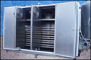 1999 Pavan Toresani / Foodmac Cascading Belt Pre-Dryer. The pre-dryer has fully automatic and continuous functions and has been designed for pre-drying filled pasta (tortellini, ravioli, etc.) and fresh, short pasta. Stainless steel chain belt width: 4 ft. 10 in. Number of belt sections: 5. Number of tubes: 36, tube dimensions: 1-1/2 in. dia. x 9 ft. 4 in. L. (132 sq. ft. surface area). Number of fans: 4. Overall dimensions: 16 ft. 1 in. L x 8 ft. 4 in. W x 9 ft. 8 in. H.
