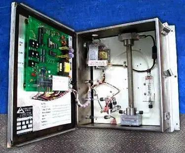 1992 PCI Ozone and Controls Systems Inc. Dissolved Ozone Monitor with Aquafine Ultraviolet Disinfection Unit. Model: DO3. S/N: 2015. Service: Water. Temperature: 77 °F (25 °C). Working pressure: 0 psig. Maximum pressure: 760 mm Hg. Power supply: 117 volt, 1 amp, 60 Hz, single phase. Aquafine Ultraviolet Disinfection Unit, Model: SP-1, S/N: AS91232, power supply: 118 V, 0.45 amps, 60 Hz. This monitor is designed to withstand environments that would destroy a typical laboratory type meter and yield precise and reliable results. Overall dimensions: 1 ft. 10 in. L x 9 in. W x 1 ft. 5 in. H.