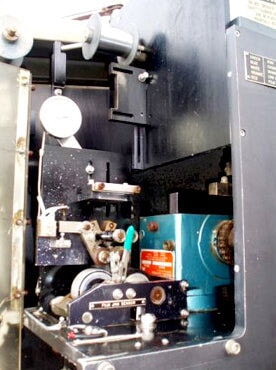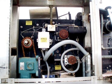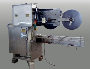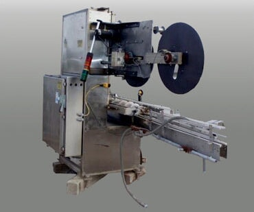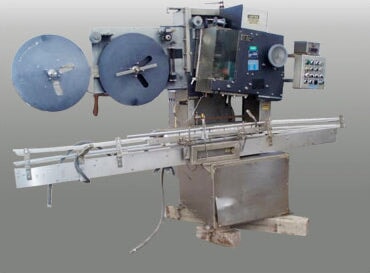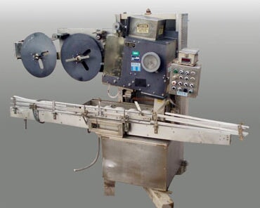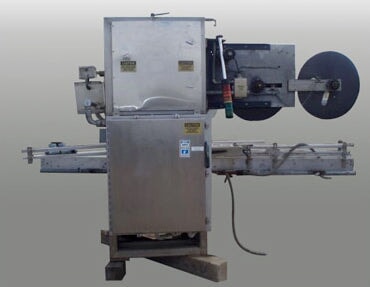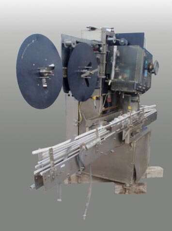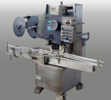 PDC Neck Bander. Model: 75C-ER. S/N: 110. Applies neck band over lid/neck of container for tamper evidence. Power supply: 240 V, 12 amps, single phase, total hp: 1.5. (2) 2 ft. 1 in. dia. film rolls. Maximum aperture/clearance: 3-1/2 in. W x 11 in. H. Timing screw dimensions: 4 ft. dia. x 3 ft. L. Maximum bottle size: 3-1/2 in. R-E Rate Meter. PDC Control Panel. Magnatek Motor, 1 hp, 1735 rpm, 180 V, 5.35 amps. Dodge Tigear Right Angle Drive. Emerson Electric Co. Speed Reducer. Baldor Electric Motor with Feed Drive, 1/4 hp, 180 DCV, 1.3 amps, reduced output, 68 rpm, ratio: 45, torque: 135 in. lbs. Film Clutch Brake. Baldor Gear Motor, 1/4 hp, 125 rpm, 180 DCV, 1.2 amps, ratio: 20, torque: 100 in. lbs. Conveyor infeed/exit height: 3 ft. Overall dimensions: 10 ft. 7 in. L x 3 ft. 6 in. W x 7 ft. 2 in. H.(H17).