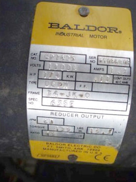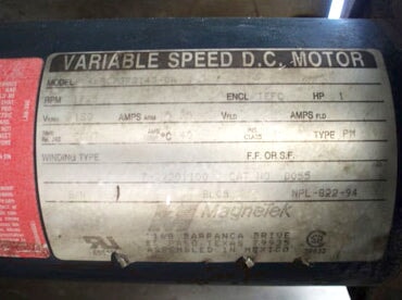 - If Multiple Motors, Motor Descriptions vs specs: (1) 1 hp Magnatek Motor, (1) 0.25 hp Baldor Electric Motor with Feed Drive, and (1) 0.25 hp Baldor Gear Motor
