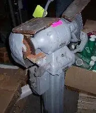 Pedestal Bench Grinder. Dual wheel. 120 V, 1 phase, 60 hz. Currently has a grinding wheel and wire wheel. Overall dimensions 1 ft. L x 18 in. W x 4 ft. H.