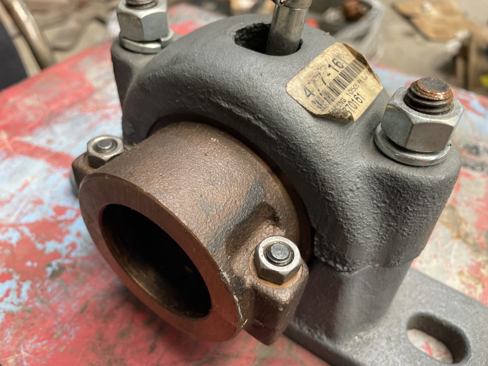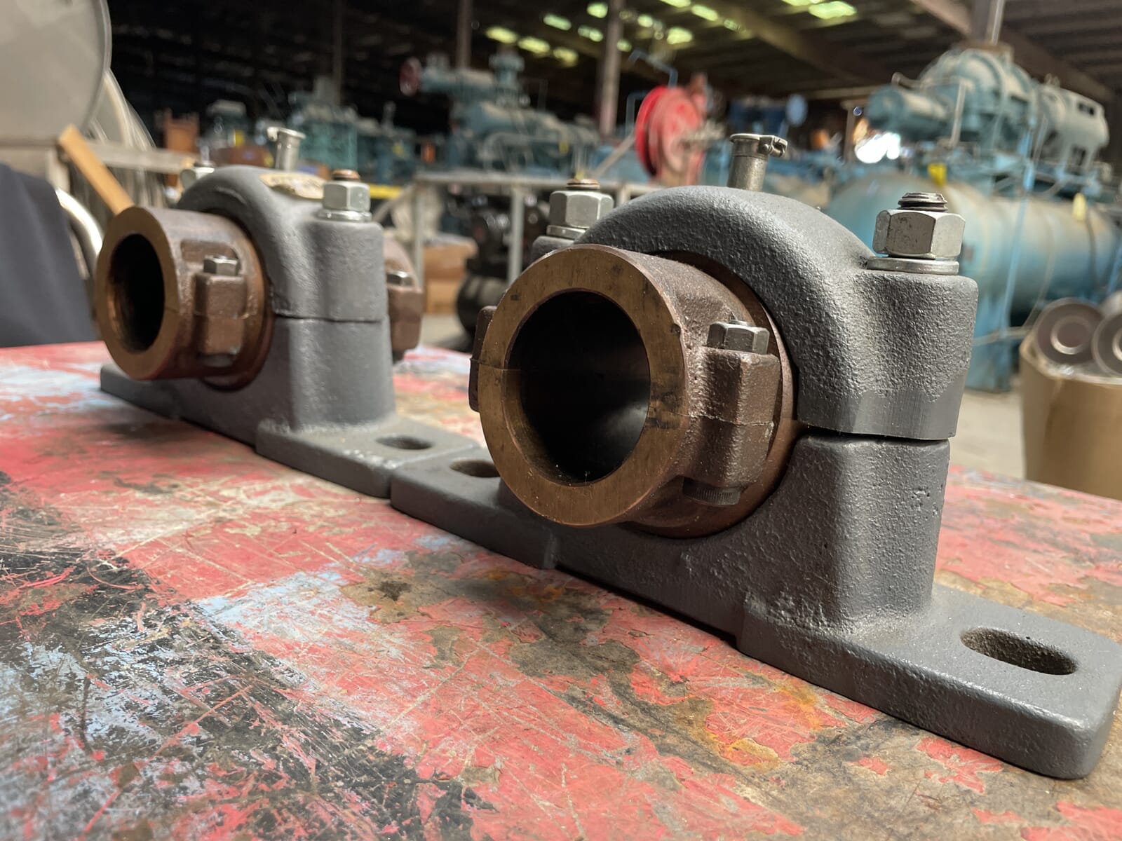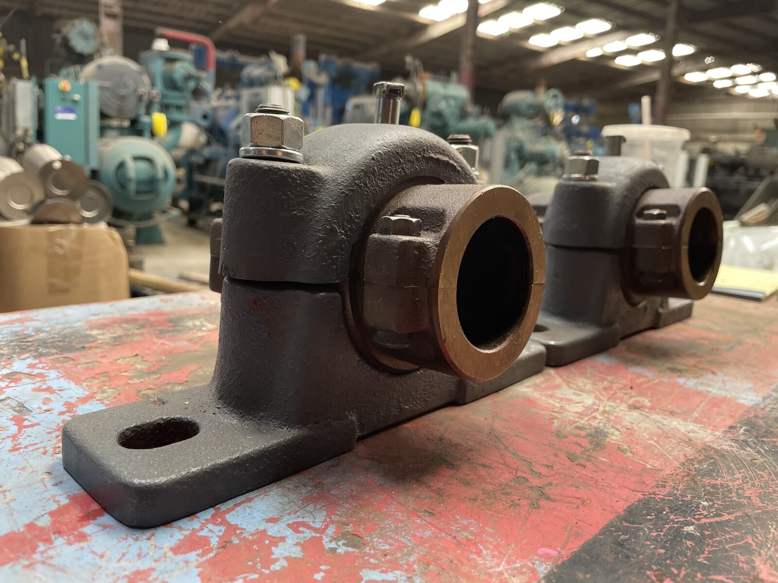 (2) Unused Cast Iron Pillow Split Base Bearing. Bore Size: 2-3/16 Inch. Shaft locking type: Set screw.