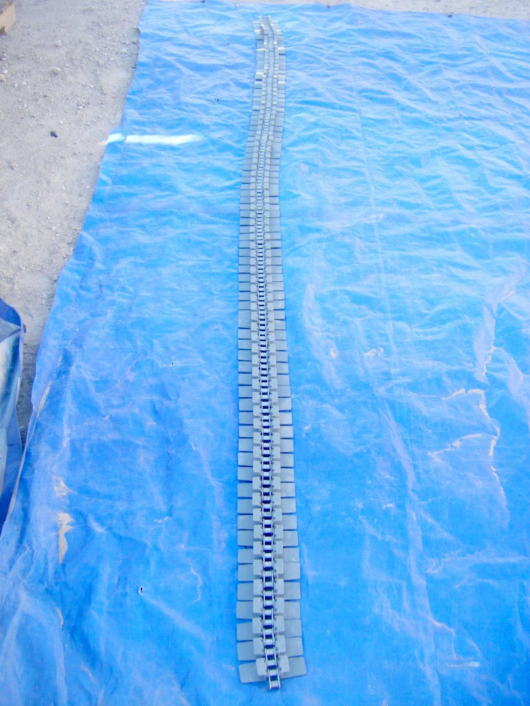 Plastic Conveyor Belt – 4.5 inch wide. (8) belt sections. Overall dimensions: 10 ft. L X 4 1/2 in. W x 1-1/4 in. H. Total length available : 80 ft.