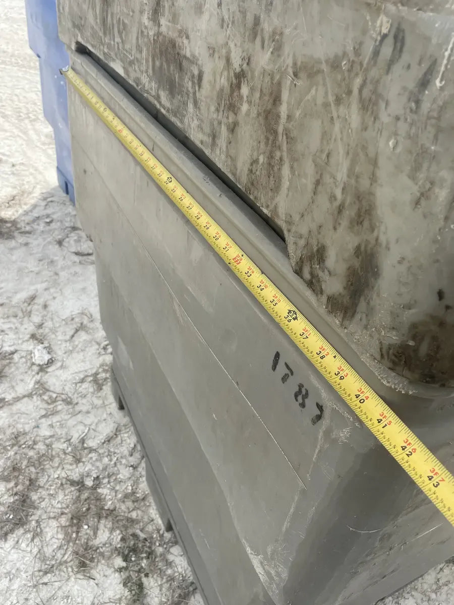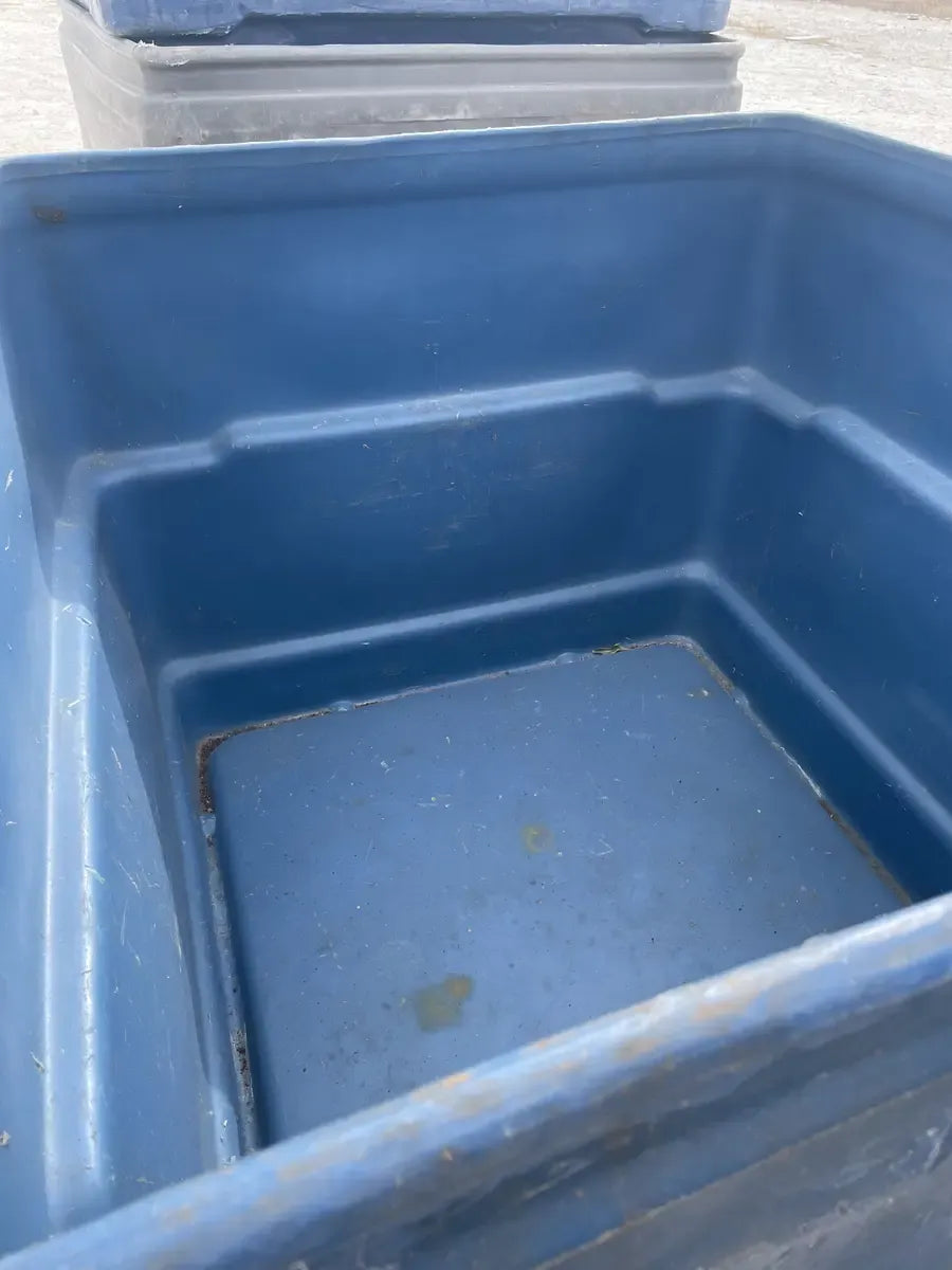 Portable Totes. Overall Dimensions(in): 47 L x 43 W x 44 H. Has Forklift forks entrance for easy handling access.