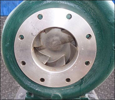 Power “D” Centrifugal Pump. Material of construction: 316 stainless steel. Flow for a new pump is rated at approximately 866 gpm with required horsepower and pressure at 61 psi. Discuss with salesperson your process and product to determine if this refurbished pump should handle your specific duty. Impeller diameter: 12 in. John Crane single mechanical seal with water flush. Sterling Electric Motor, 30 hp, 1765 rpm, 230/460 V, 72.0/36.0 amps. 60 Hz. 3 phase. Inlet: (1) 6 in. dia. flanged port. Outlet: (1) 4 in. dia. flanged port. Overall dimensions: 4 ft. 10 in. L x 1 ft. 6 in. W x 2 ft. 4-1/2 in. H. (ACN130).