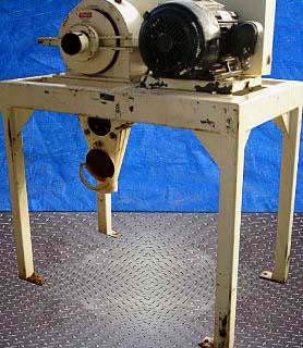 Prater Hammermill. Model: M30. S/N: 391081. Hammermill utilizes a 3/16-mesh screen over a mild steel cutting disc. Cutting disc diameter: 10 in. Premium Efficiency Motor, 20 hp, 3525 rpm, 230/460 V, 47.2/23.6 amps, 60 Hz, 3 phase. Inlets: 3-1/2 in. dia. infeed port. Outlet: (2) 4 in. dia. bottom discharge port. Overall dimensions: 52 in. L x 32 in. W x 67 in H.(H14).