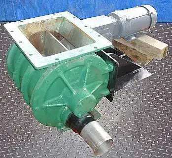 Premier Pneumatics Rotary Airlock. Model: BTFS-B12-8NH-1-L. S/N: 9856-187. Marathon Electric Motor, 1 hp, 1140 rpm, 575 V, 1.6 FLA, 60 Hz, 3 phase. Ohio Gear Reducer, 50 ratio, 22.8 rpm (final). Motor is certified by Underwriter Laboratories to work in hazardous locations. Inlets: (1) 12 in. L x 9-1/2 in. W infeed with a 15-1/2 L x 11 in. W rectangular flange and (10) 1/2 in. dia. thru-holes. Outlets: (2) 3-1/2 in. dia. ports. Overall dimensions: 40 in. L x 33 in. W x 17 in. H.