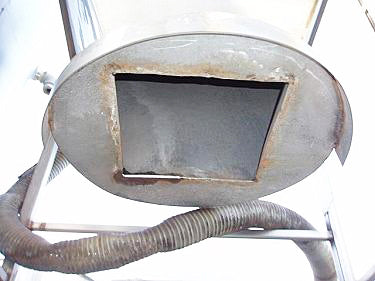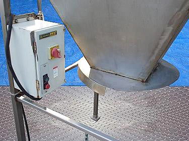 President Hammer Mill with Stainless Steel Hopper- 60 Gallon. Model: 18765. S/N: 1. Type: 4K. Screen diameter: 21 in. Screen hole size: 3-16 in. Hammer Mill blade cover diameter: 13 in. Unit is equipped with (12) 5 in. x 1-1/2 in. mild steel cutting blades. Baldor Super-E Motor, 5 hp, 3500 rpm, 230/460 V, 11.2/5.6 amps, 60 Hz, 3 ph. Inlets: (1) 3 in. dia. port, (1) 7-3/4 in. dia. infeed. Outlets: 13 in. x 13 in. discharge (discharge height: 37 in.). Overall dimensions: 43 in. L x 39 in. W x 104 in. H.