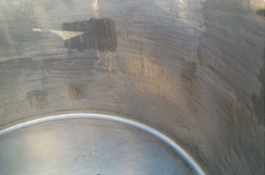 Processor Tank - 500 Gallon. Stainless steel. With center bridge. (2) 1 in. inlets, (1) 1-1/2 in. inlet, (1) 2-1/2 in. inlet, (1) 2 in. inlet. (2) 2 in. pipes leading to the jacket. (4) 10 in. legs, inside dimensions 65-1/2 dia. x 37-1/2 in. H.