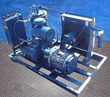 1992 Quincy Rotary Screw Air Compressor. Model QSI350. S/N: 91783 SI03ANA3LH. S/N and Nat’l Bd: 66357. Flow rate at 100 psi: 350 cfm. MAWP: 225 psi @ 650 °F. MDMT: -20 °F @ 225 psi. General Electric motor, 75 hp, 1730 rpm, 230/460 V, 178.8/88.4 amps, 60 Hz, 3 phase, Frame 365TS. (1) 24 in. dia. fan with a General Electric motor, S/N: 5K182AD21013, 3 hp, 1745 rpm, 200-230/460 V, 8.6/4.5 amps, 60 Hz, 3 phase. Quincy Auto-Dual control. Compressor run time: 31,387 hrs. Inlets: (1) 2-1/2 in. dia. bevel. Overall dimensions: 8 ft. L x 4 ft. 8 in. W x 4 ft. 8-1/2 in. H. (H11)(ACN227)