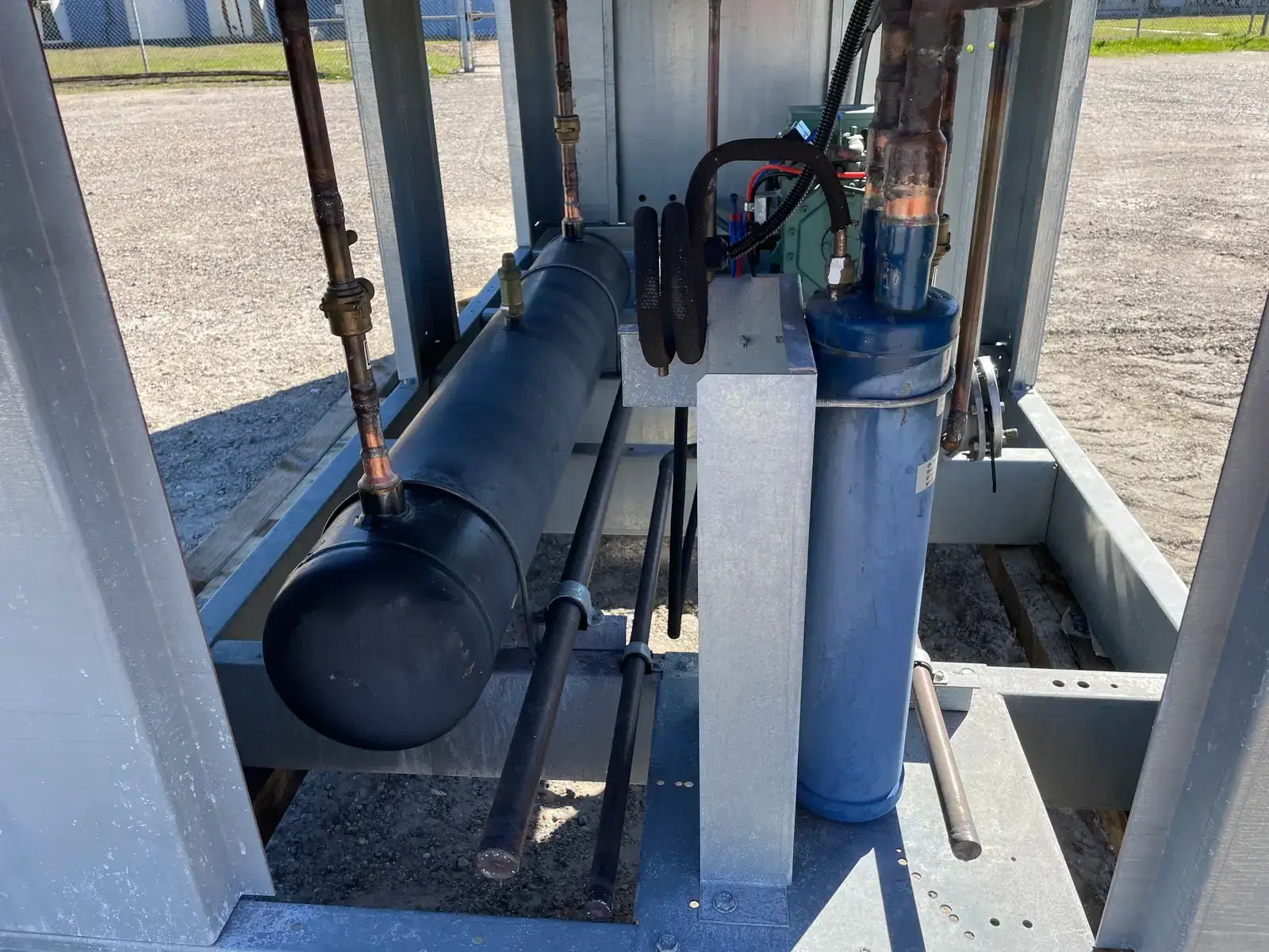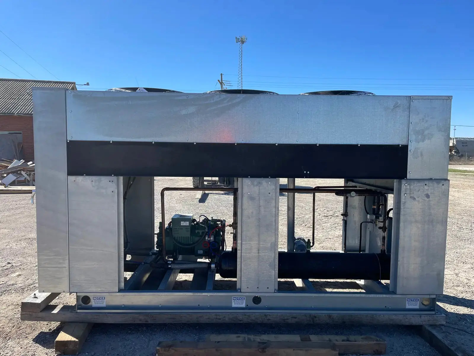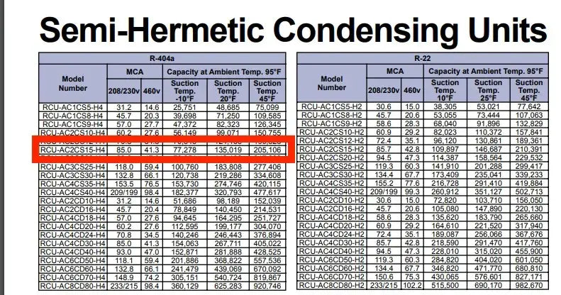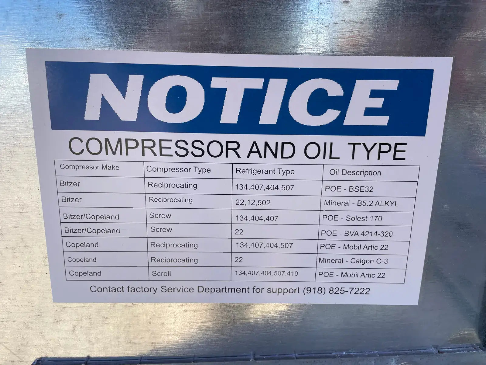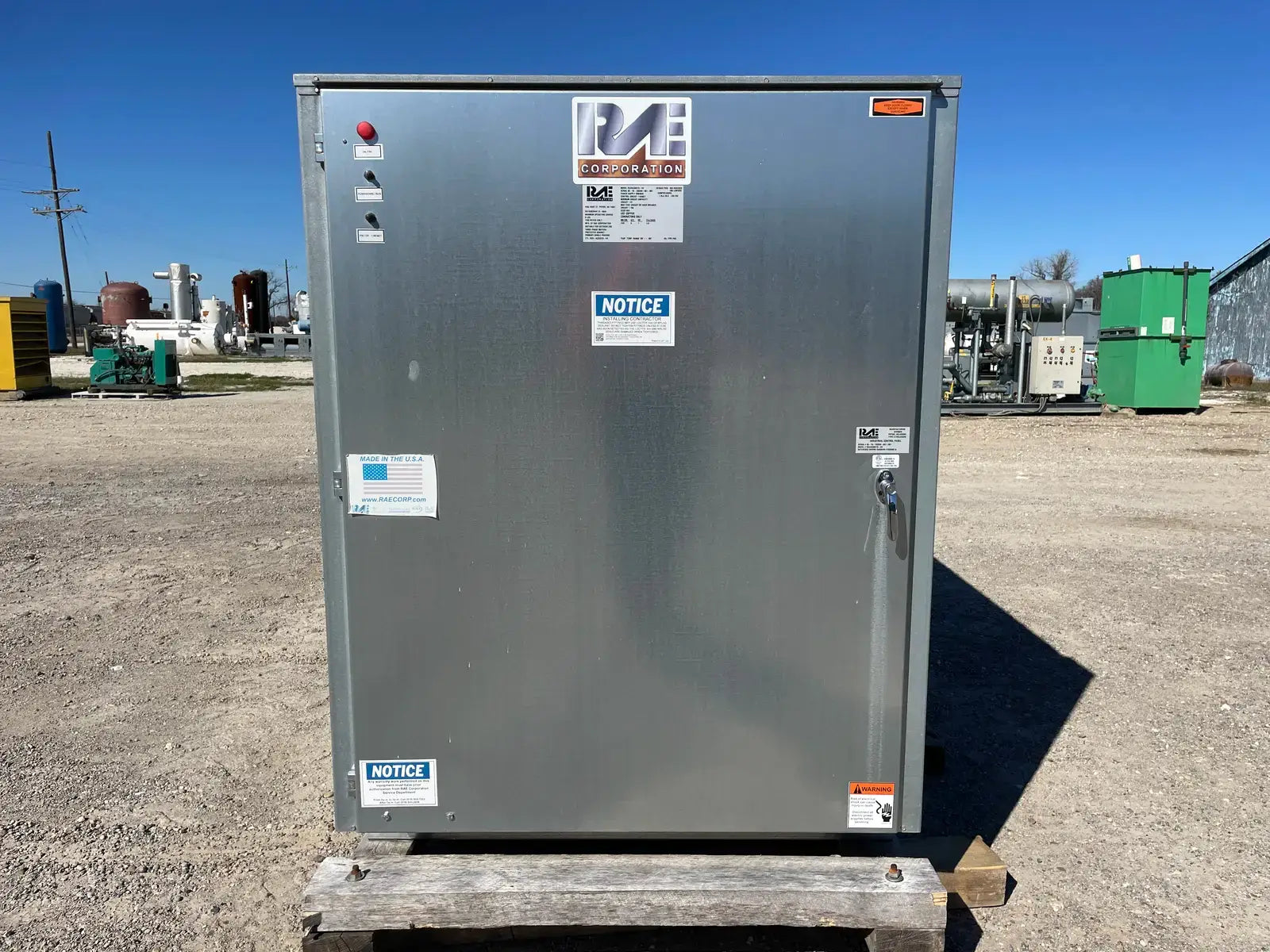 Unused RAE Corporation Air Cooled Condenser. Model: RCUAC3BS15-H4. Serial No: 05-19-135339-001-001. Power Supply: 208/60/3. Control Circuit: 115/60/1. Design Pressure(PSIG): 450 High Side, 180 Low Side. Bitzer Us, Inc Compressor(1): 15 HP, RLA: 59.6, LRA: 252. Fan Motors (1): Qty: 3, HP: 1, FLA Each: 4.6. Evap. Temperature. Range: 10F - 45F. Suitable for outdoor use. Previous Refrigerant: R-404A.