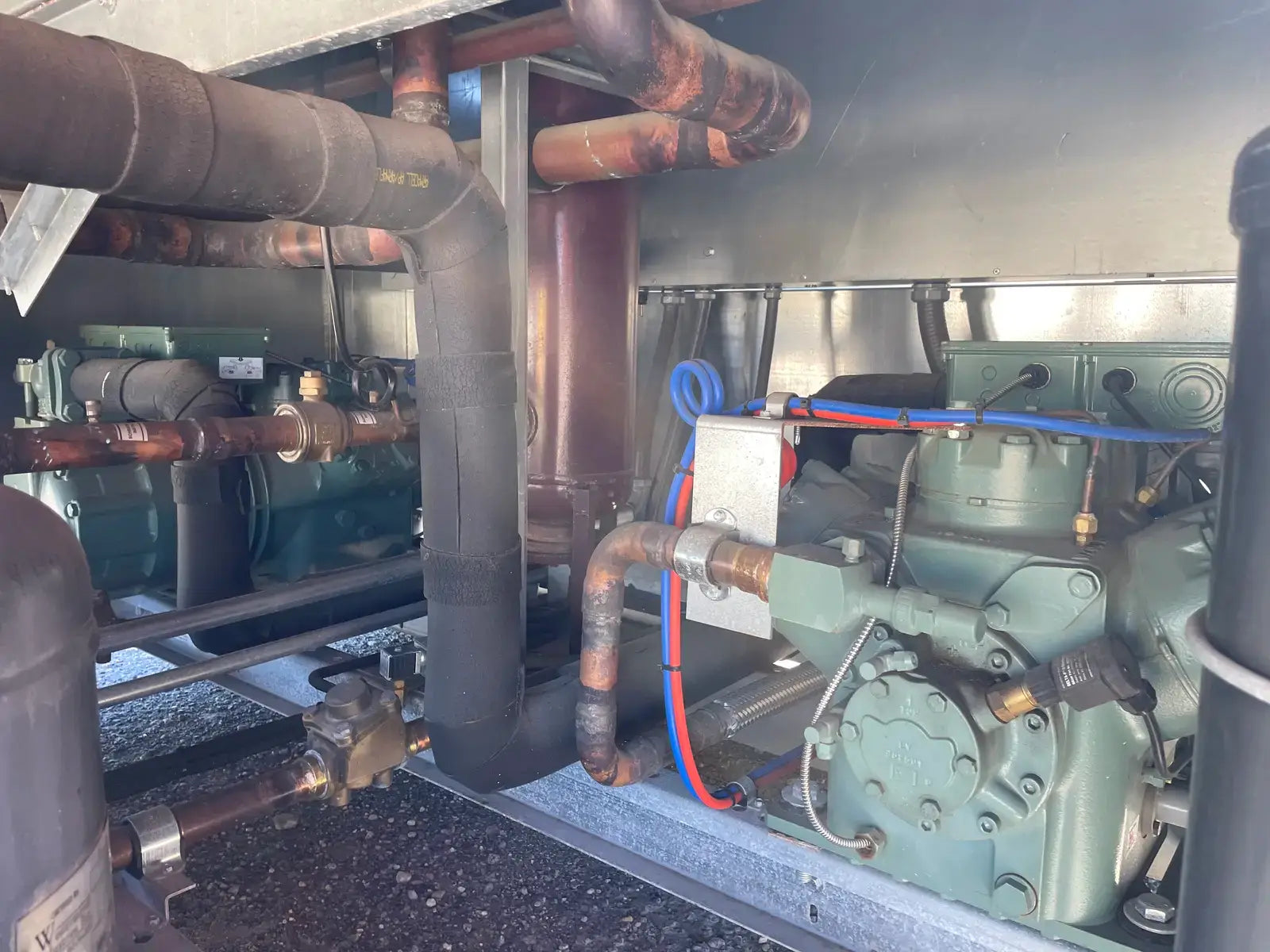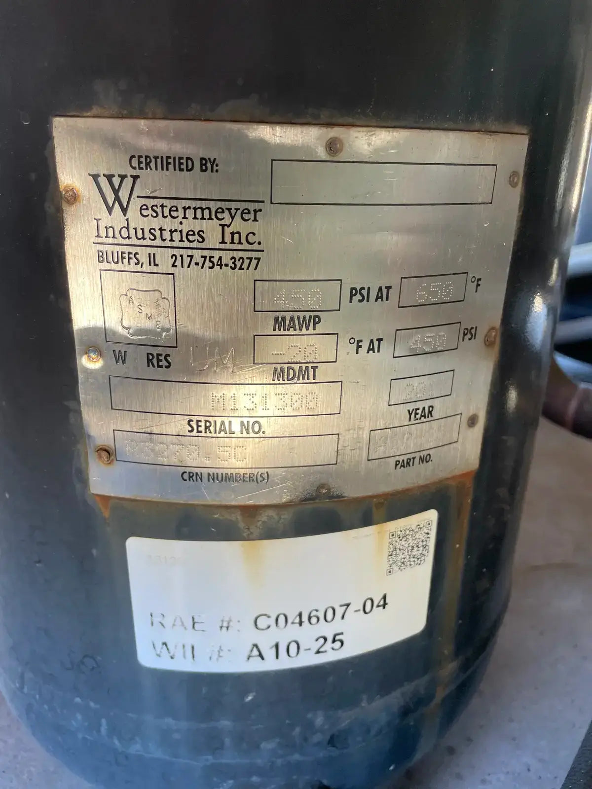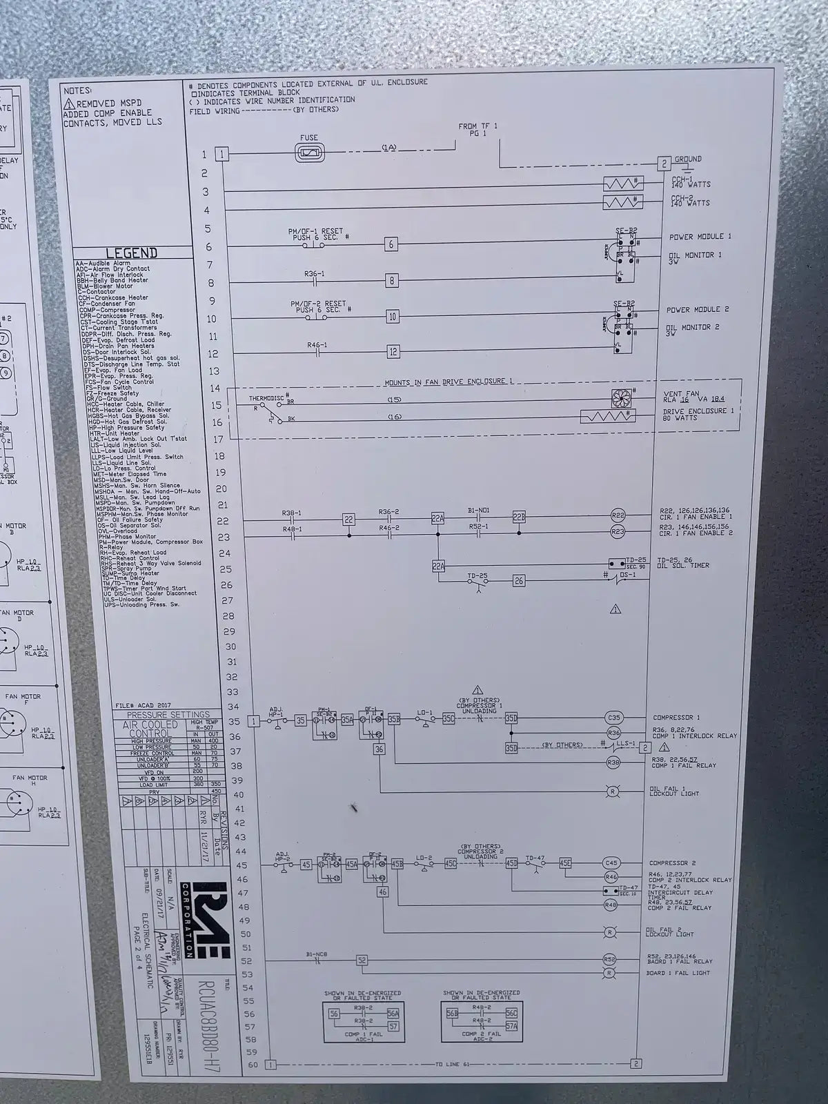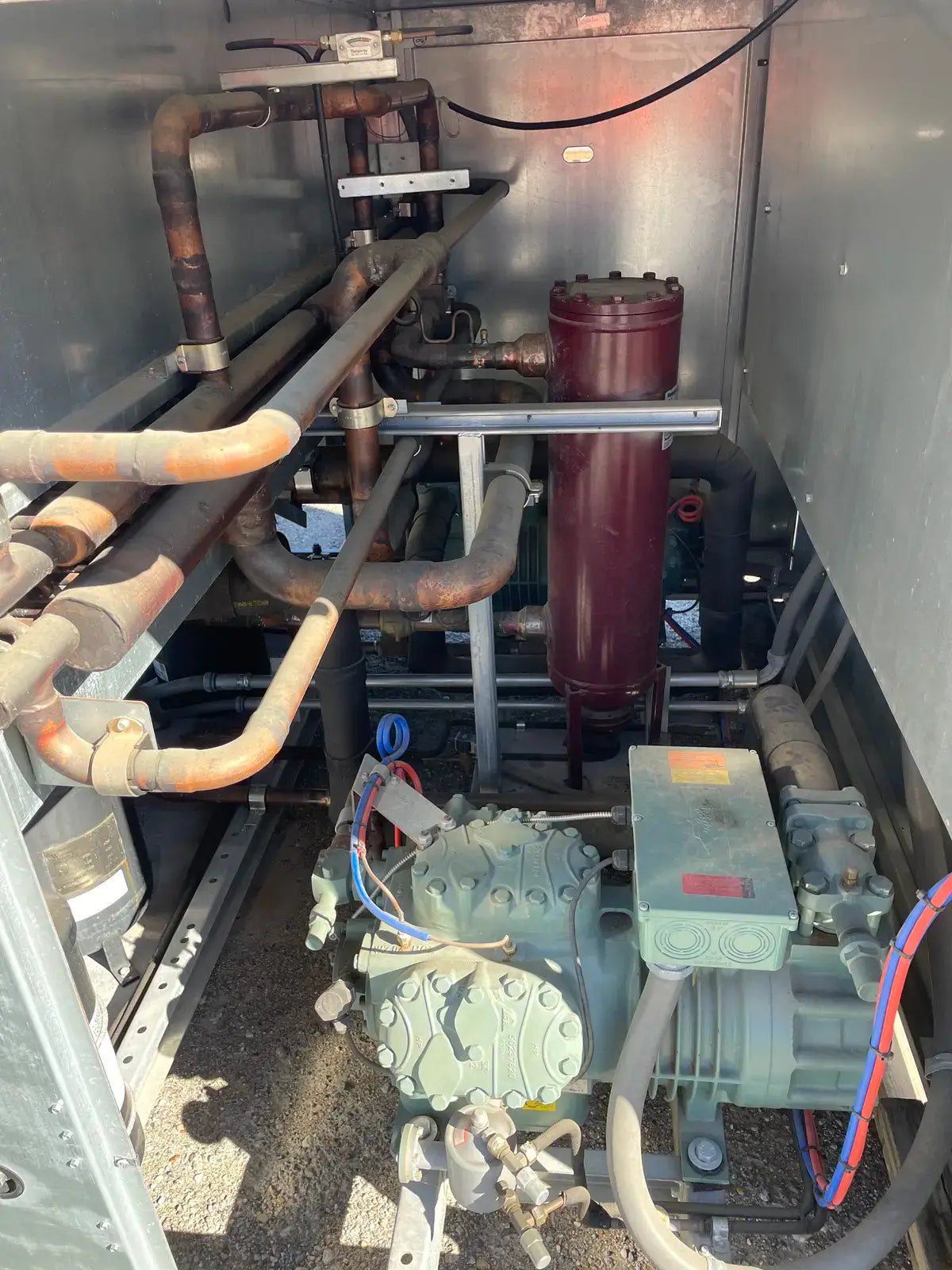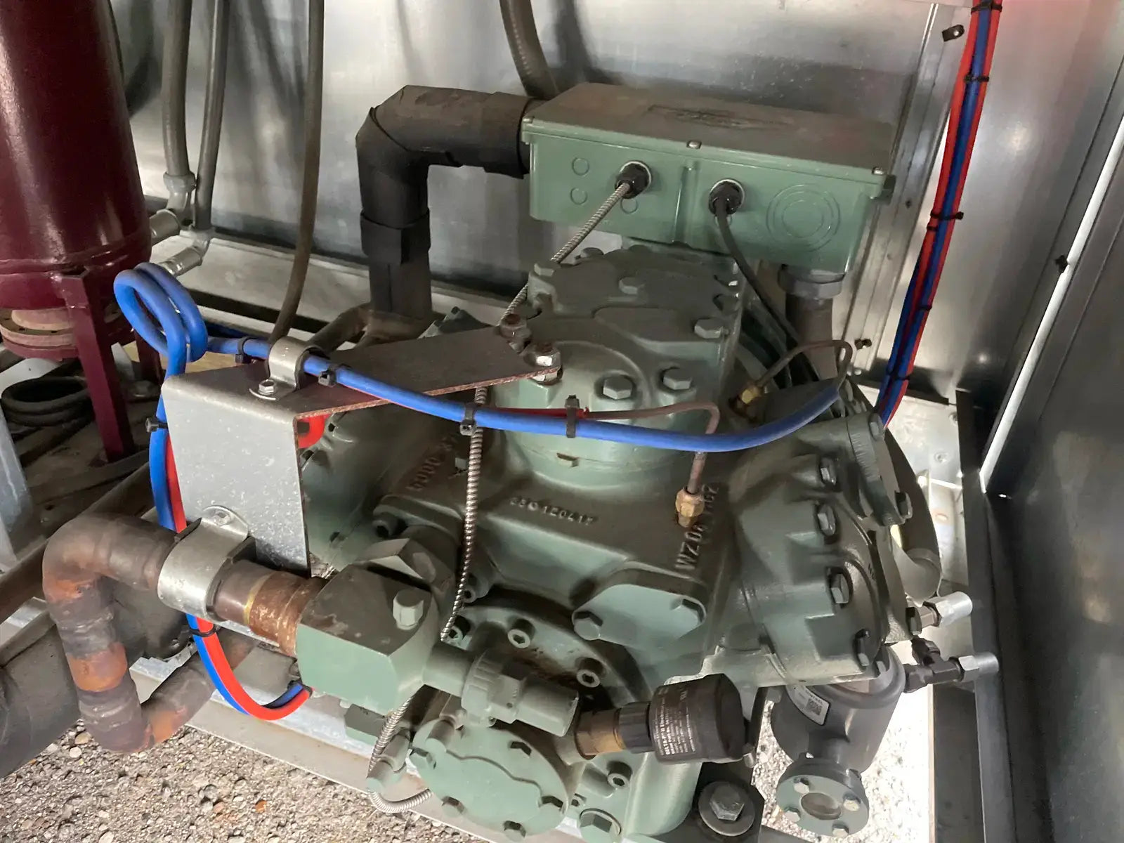 RAE Corporation Air Cooled Condenser. Model: RCUAC8BD80-H7. Serial No: 11-17-129551-001-001. Power Supply: 460/60/3. Refrigerant: R-507. Minimum Operating Charge: 0 LBS. Design PSIG - High side: 450, Low Side: 180. Bitzer US, Inc Compressors(2): 1: Type: 6GE-40-2NUHP: 80, RLA: 73.9, LRA: 350. (2): HP: 80, RLA: 73.9, LRA: 350. Fan Motors: Qty: 8, HP: 1, FLA Each: 2.3. Suitable for Outdoor use.