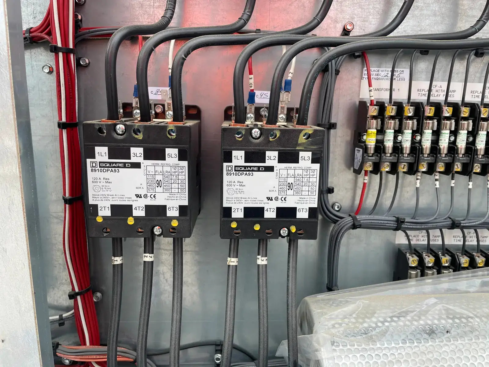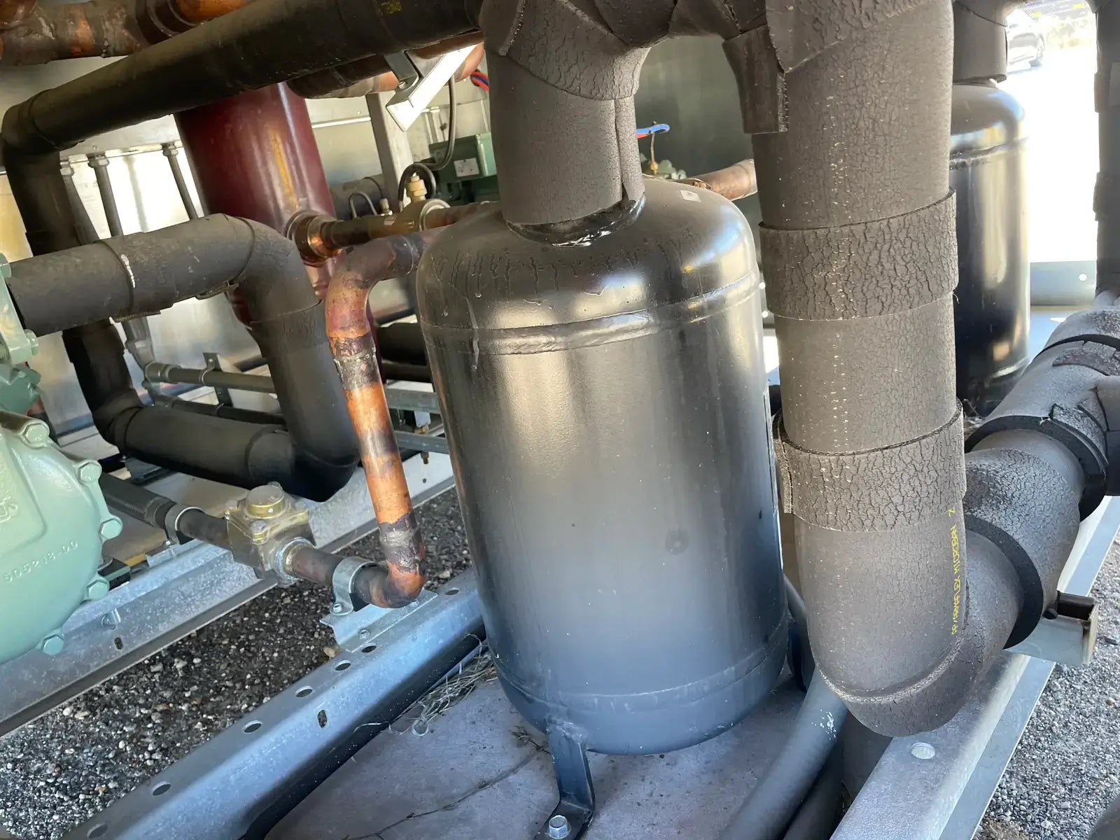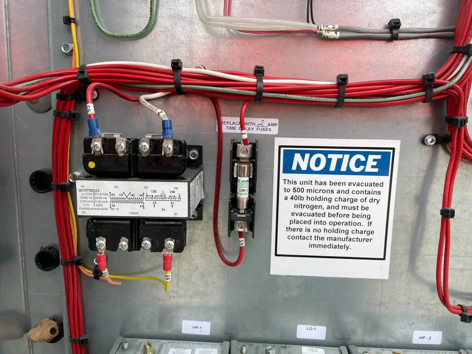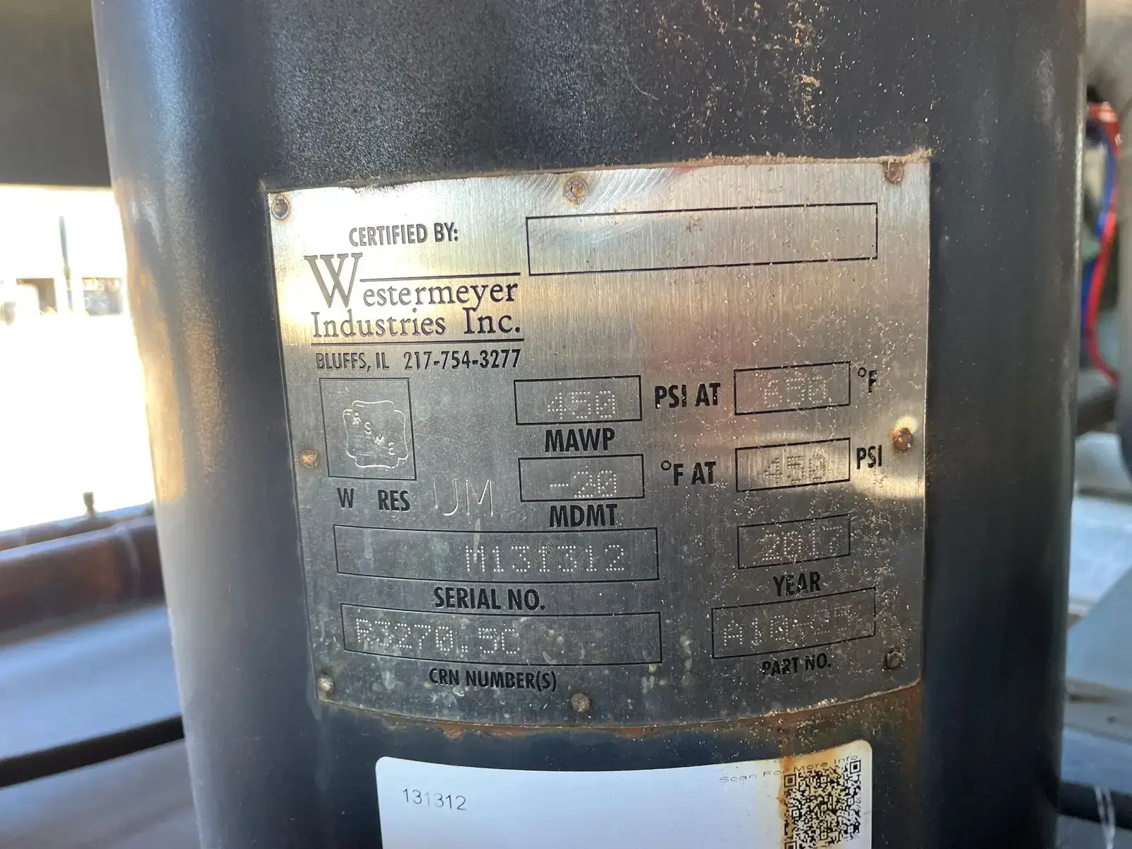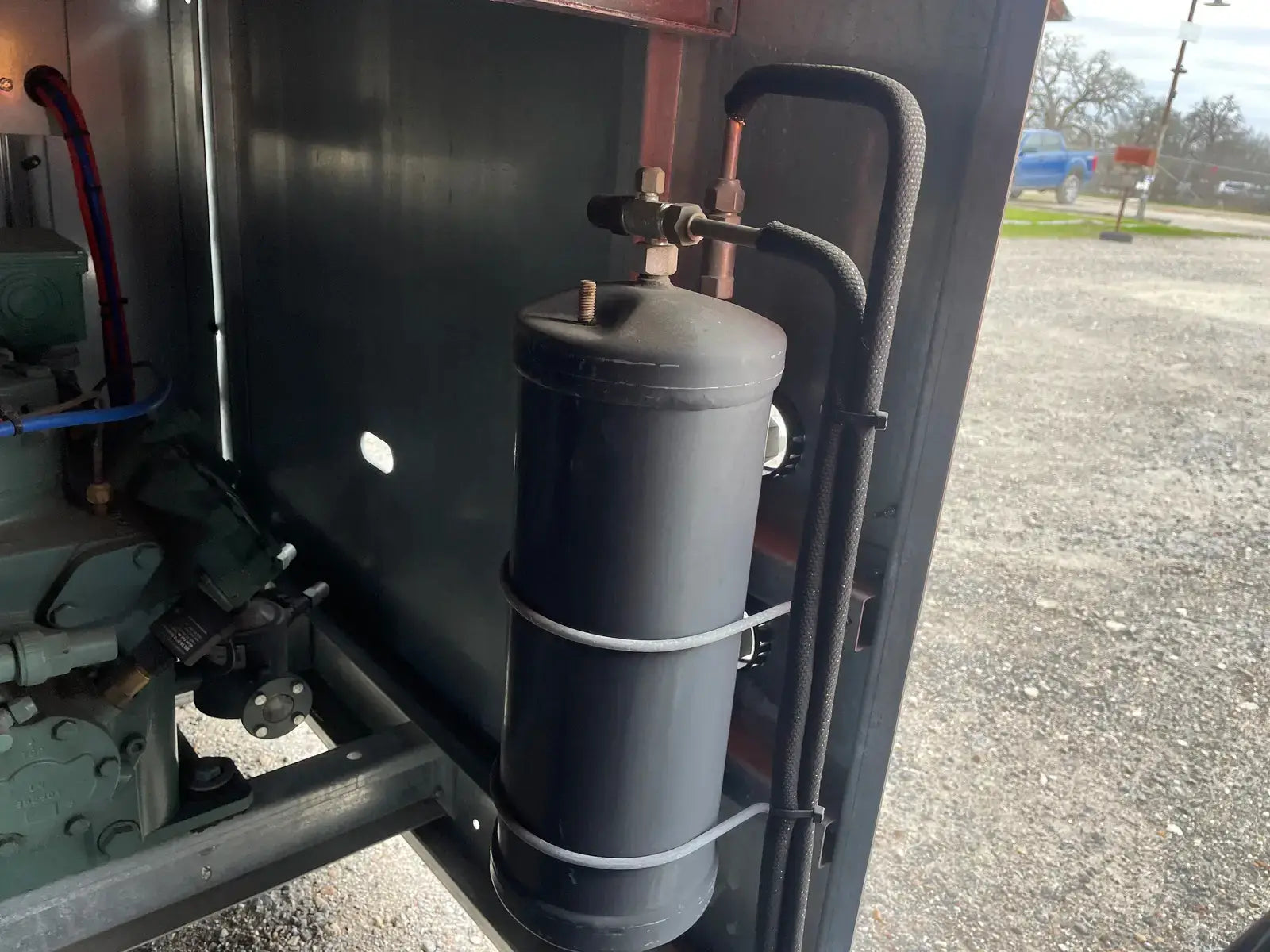 RAE Corporation Air Cooled Condenser. Model: RCUAC8BD80-H7. Serial No: 11-17-129551-001-001. Power Supply: 460/60/3. Refrigerant: R-507. Minimum Operating Charge: 0 LBS. Design PSIG - High side: 450, Low Side: 180. Bitzer US, Inc Compressors(2): 1: Type: 6GE-40-2NUHP: 80, RLA: 73.9, LRA: 350. (2): HP: 80, RLA: 73.9, LRA: 350. Fan Motors: Qty: 8, HP: 1, FLA Each: 2.3. Suitable for Outdoor use.