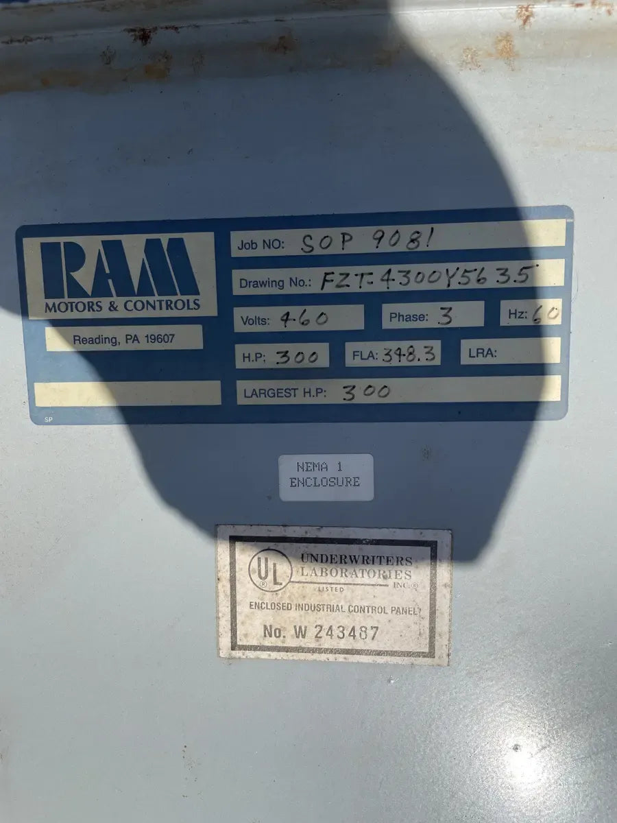 Job No: SOP9081, Drawing No: FZT-4300Y5635, Volts: 460, PH: 3, Hz: 60, HP: 300, FLA:348.3, Largest HP: 300.