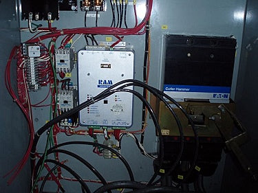 Ram Industries Motor Starter Control Panel- 350 HP. Job No. 3014236, Drawing No. FKC-4350Y1033. Power supply: 460 V, 399 FLA, 60 Hz, 3 phase. Acme 2 KVA Industrial Control Transformer, Type No. TA-2- 81219, 50/60 Hz. Ram Industries Microprocessor Based Motor Protection Module, Input: 120 VAC, 60 Hz, Output: 1/3 hp @ 120 VAC, 10 amps. Overall dimensions: 2 ft. 8 in. L x 1 ft. 8 in. W x 5 ft. 6 in. H.