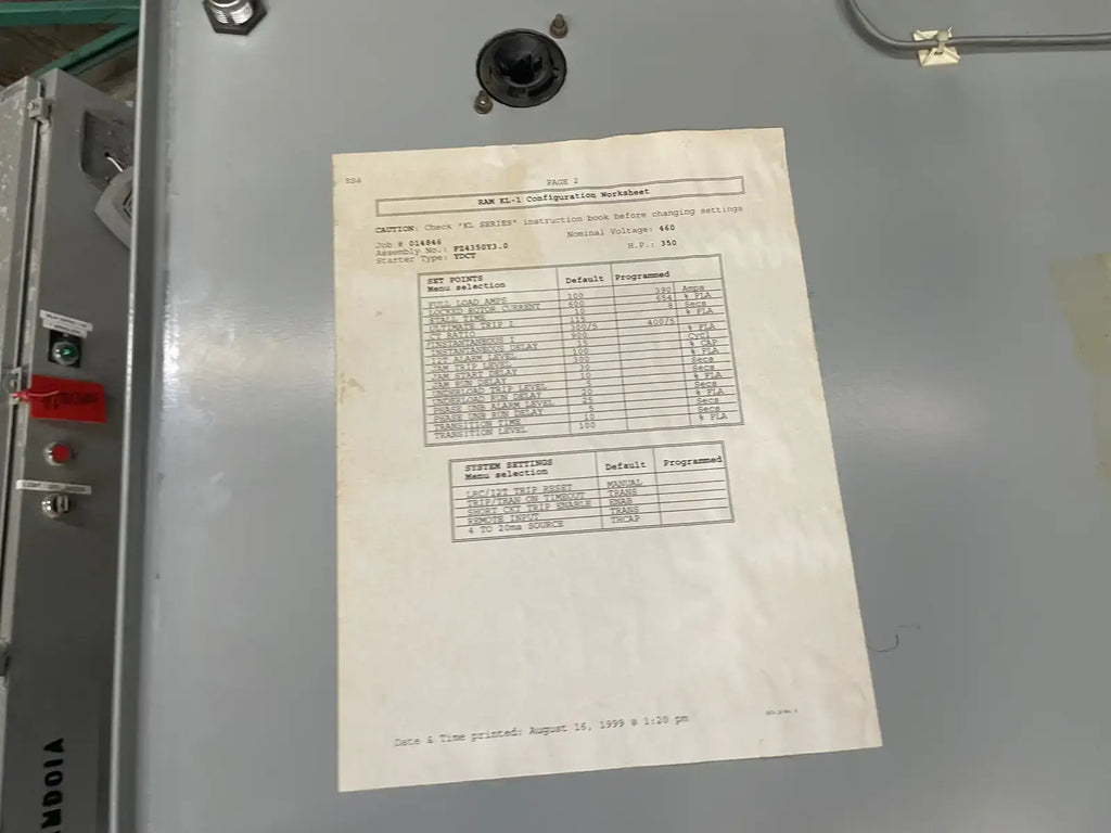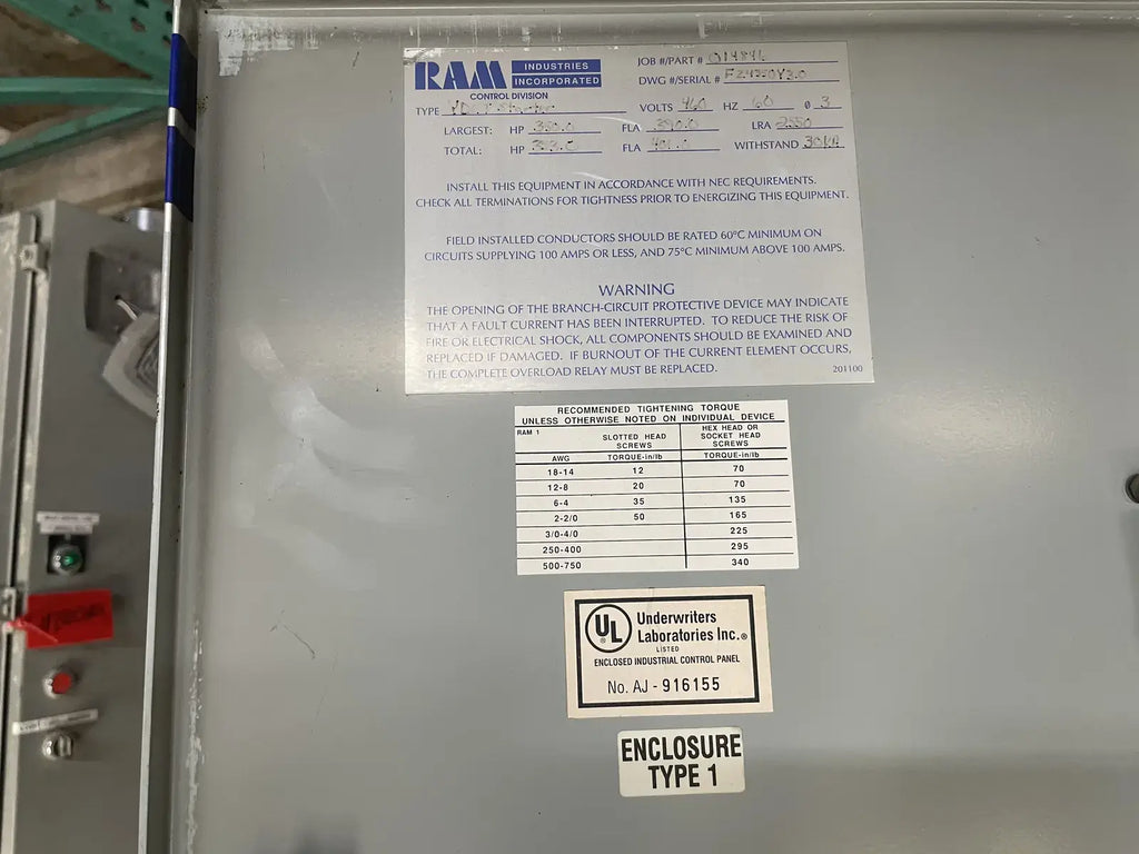 Ram Industries Screw Compressor Motor Starter (350 HP, 460 Volt, 60 Hz)