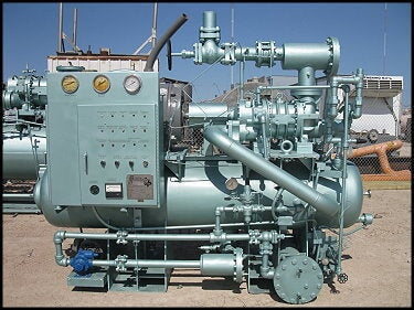 Reco 160LUD-MX-3.6 / Mycom 160 VLD Rotary Screw Compressor Package. Model: 160LUD-MX-3.6 / 160VLD. CFM: 441. Compressor manufactured in 1998. Toshiba electric motor, 200 hp, 3540 rpm, 230/460 V. Reco oil separator, MAWP: 250 psi at 300ºF. Mycom rotary screw compressor, Model: 160VLD, Vi setting: Currently set at 3.6 but is manually adjustable from 2.6 to 5.8. Displacement: 441 cfm. Last used with R-717 (ammonia) producing 164 tons at 174 BHP with a 20ºF suction temperature and a 95ºF condensing temperature. Reco control panel. Compressor run time: 59,081.8 hrs. Overall dimensions: 10 ft. 4 in. L x 3 ft. 8 in. W x 6 ft. 2 in. H.(H4).
