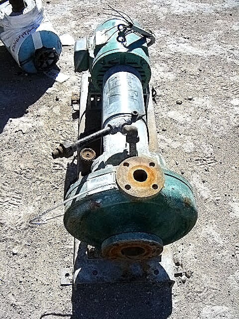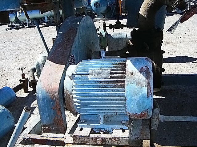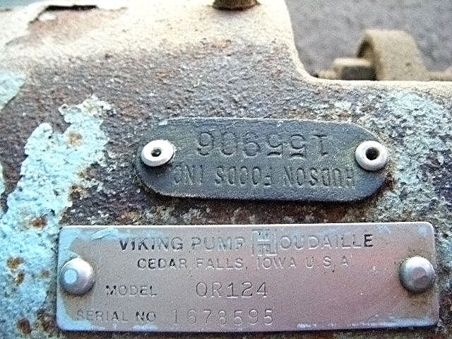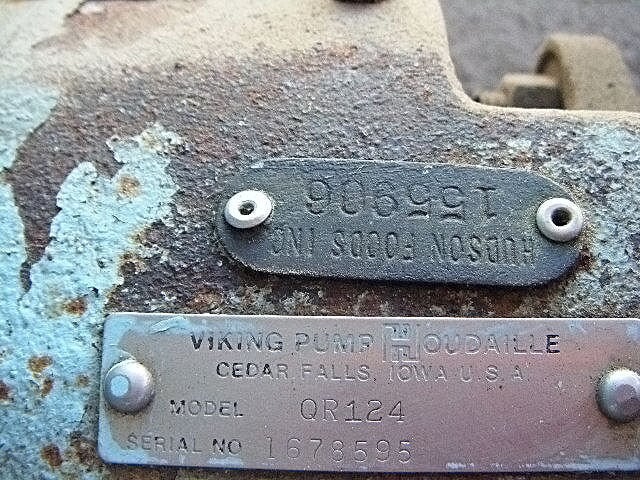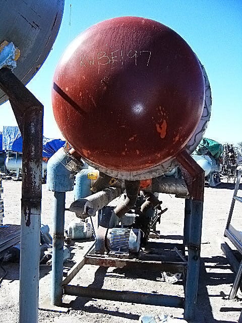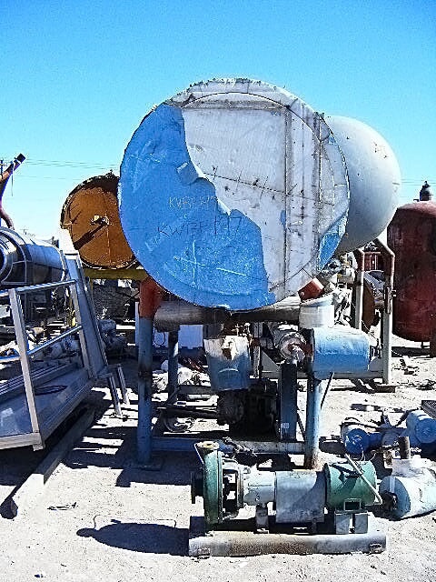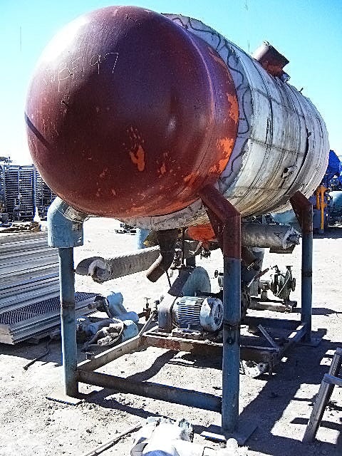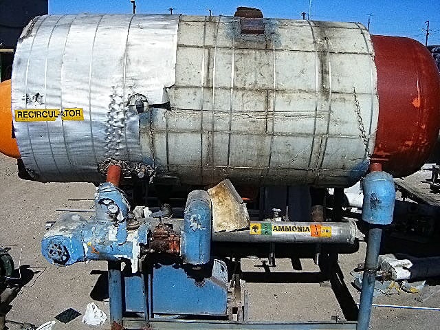Reco Ammonia Recirculator Package. Nominal capacity: 1,290 gallons. Inside straight-wall dimensions: 54 in. dia. x 9 ft. 5 in. L. Refrigerant: R-717 (Ammonia). MAWP: 150 psi @ 300ºF. Head thickness: .375 in. Shell thickness: .375 in. Radius: 2:1 elliptical ends. Viking pump: Model: QR124. Toshiba pump motor: 5 hp, 875 rpm, 16.4/8.20 amps, 230/460 V, 60 Hz, 3 phase. Inlets: (1) 10 in. dia. port, (1) 1 in. dia. port. Outlets: (1) 8 in. dia. port, (2) 6 in. dia. port, (1) 1-1/2 in. dia. port, (1) 1 in. dia. port. Overall dimensions: 12 ft. 3 in. L x 6 ft. 2 in. H x 10 ft. H.(H9)
