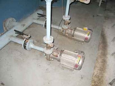 Rectangular Stainless Steel Storage Tank. Dimensions 7-1/2 ft. x 7-1/2 ft. x 8 ft. & (1) 7 ft. dia x 8 ft. straight side vertical carbon steel storage tank with connecting pumps.