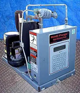 Redi-Purge High Efficiency Refrigerant Purger. Model: PRG-11/123-C2. S/N: 3134. Refrigerant: HFC-134a, electrical requirements: 115 VAC, design pressure (hi/lo): 235/140 psig. Copeland Quality Scroll Compressor, Model: JR36C1E-IAA-100, S/N: 98F38196. Overall dimensions: 26 in. L x 18 in. W x 21 in. H.(ACN40).