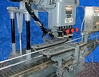 Resina Screw Capper. Model RU120-466. S/N 61-2633. Capper is set for a 28 mm cap and can adjust height for a 6.6 in. bottle to 12 in. bottle. Machine is set for 28 mm cap on 11.5 in. bottle. Cap size can be changed by using different cap sorter and cap sliders. EXR.