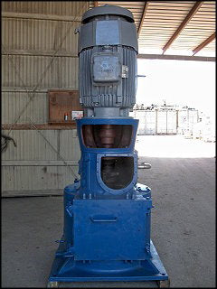 Rietz Disintegrator. Model: RD-18-H32. U.S. Electrical Motor: 75 hp, 1800 rpm, 220/440 V, 184/92 amps, 60 Hz, 3 phase. Hammer dimensions: 4 in. L x 2 in. W. Number of blades: 24. Blade dimensions: 4 in. L x 1-1/2 in. W. Inlets/outlets: (2) 1 ft. 10 in. W. x 1 ft. 7-1/2 in. H. side access doors, (1) 11-1/2 in. W. x 11-5/8 in. H. U shaped feed, (1) 1 ft. 6 in. pulp discharge, and (1) 2-1/2 in. FNPT bevel seat. Overall dimensions: 3 ft. 6 in. L x 3 ft. 4 in. W x 8 ft. H.