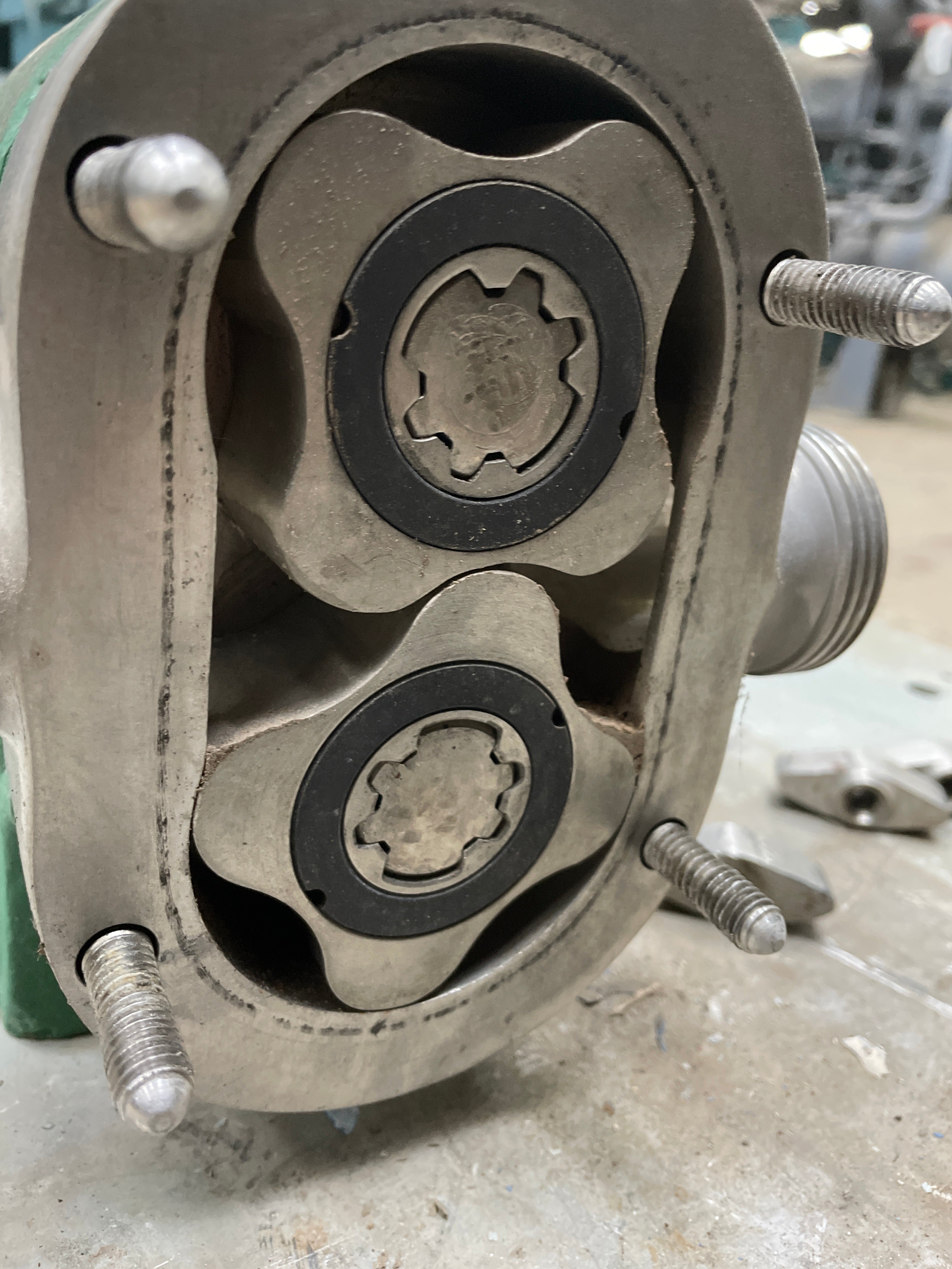 Rotary Pump. (2) 3 in. rotors. (2) 1-1/2 in. ACME fittings. Overall dimensions: 11 in. L x 7 in. W x 8-3/8 in. H.