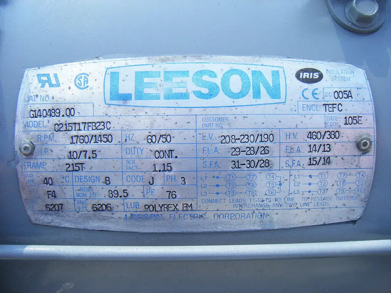 - Motor Manufacturer: Leeson