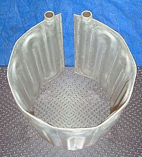 Round Plate Chiller/Heater. Fluid capacity: 1/2 gal. Stainless Steel construction, unit is sanitary and can be used inside a tank to heat or cool product. Inlets/outlets: (2) 3/4 in. dia. ports. Overall dimensions: 12-1/2 in. dia. x 14 in. H.