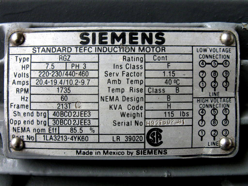 - Motor Manufacturer: SIEMENS
