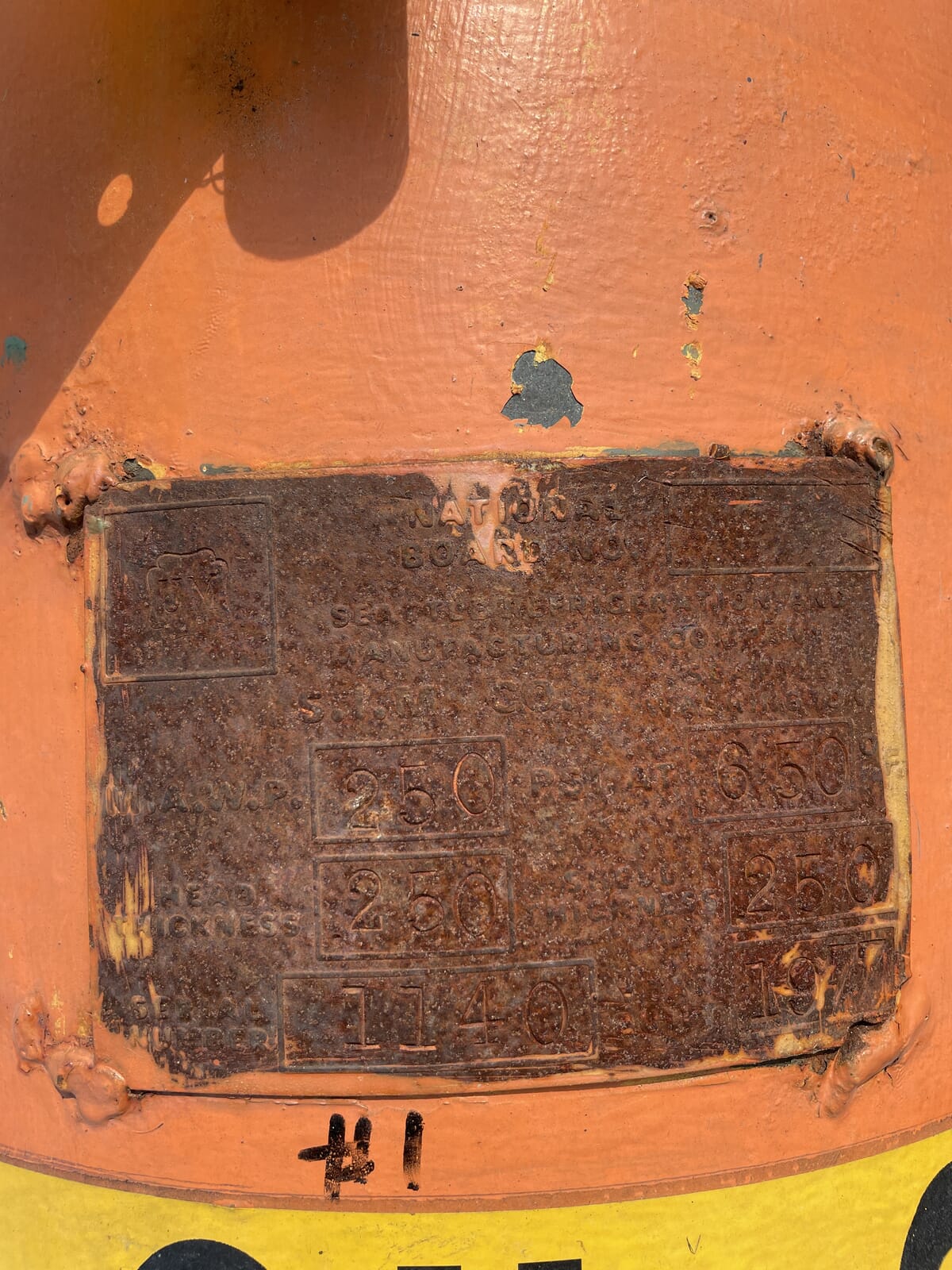 Seattle Refrigeration Inc. Vertical Oil Seperator (12in x 35in. 17 Gallons) Serial Number: 1140. Tank National Board Number: . Tank Estimated Capacity (Gallons): 17. Tank MAWP (PSI @ Temp): 250 PSI @ 650F. Tank MAWT (PSI @ Temp). Previous Refrigerant was Ammonia (R717 | NH3). Manufactured in 1977. Shipping Dimensions (Inches): 35 x 12 x 15. 350 LB