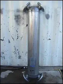 2001 Secespol Shell and Coil Vertical Heat Exchanger. Model: JAD XK 12.114.12. Heat transfer area: 113 sq. ft. MAWP of both shell and tubes: 250 psig @ 406ºF. MDTMT of both shell and tubes : -155ºF @ 250 psig. Secespol’s JAD XK heat exchangers feature angular connections and circular layers of helically corrugated tubes within the shell, and are designed for vertical installations or any application where space is a limiting factor. Inlets/outlets: (4) 4 in. flange. Overall dimensions: 6 ft. L X 1 ft. 8 in. W X 1 ft. H.(ACN100).
