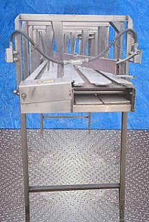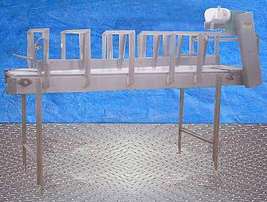 SECO Simplimatic Engineering Company Conveyor. Baldor Motor, 1 hp, 1725 rpm, 208-230/460 V, 3.6-3.2/1.6 amps, 60 Hz, 3 Phase. Flexaline Grove Gear, 1.02 Hp Input, Ratio: 80. Infeed/Exit: 49 in. H. Product Clearance: 24 in. W x 16-1/2 in. H. (4) 6 in. dia. sprocket with a 3/4 in. spacing between teeth. Overall Dimensions: 10 ft. 3 in. L x 34 in. W x 79 in. H.