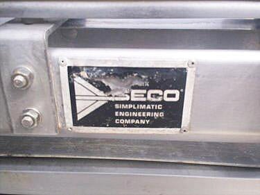 SECO Simplimatic Engineering Company Conveyor. Maximum size of belt handled: 5 in. W. Overall dimensions: 24 in. L x 13-1/2 in. W x 14-1/2 in. H.