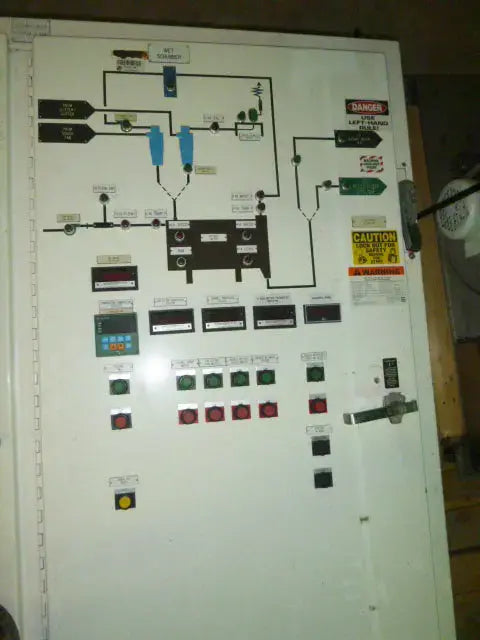 Single Shell Rotary Louvre Dryer Package. Roto-Louvre Dryers are used to dry or roast products for the food, chemical or mineral industries. This Roto-Louvre Dryer was installed with General Mills Foods in Plymouth, Minnesota. Dryer and components materials of construction include: stainless steel, mild carbon steel, painted steel, and painted insulation over mild steel for ductwork. Package includes: Steam coil duct with two aluminum coils, stainless steel GRC isometric product chamber, General Mills control panel, Reeves MAS 51 drive, New York Blower Company exhaust fan, special structural plate louvers and flights, anti-friction trunnion and thrust rollers with steel supporting bases, carbon steel painted supports and various valves and attachments as pictured in attached PDF.