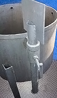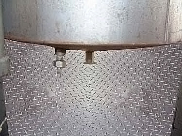 Single Shell Open Top Tank Aprox. 30 Gallon. Inside dimensions 23-1/2 in. dia. x 17-1/2 in. high, 1 in. bottom outlet and (2) 1 in. side inlets on stainless steel legs. Overall dimensions 34 in. L x 34 in. W x 32 in. H.