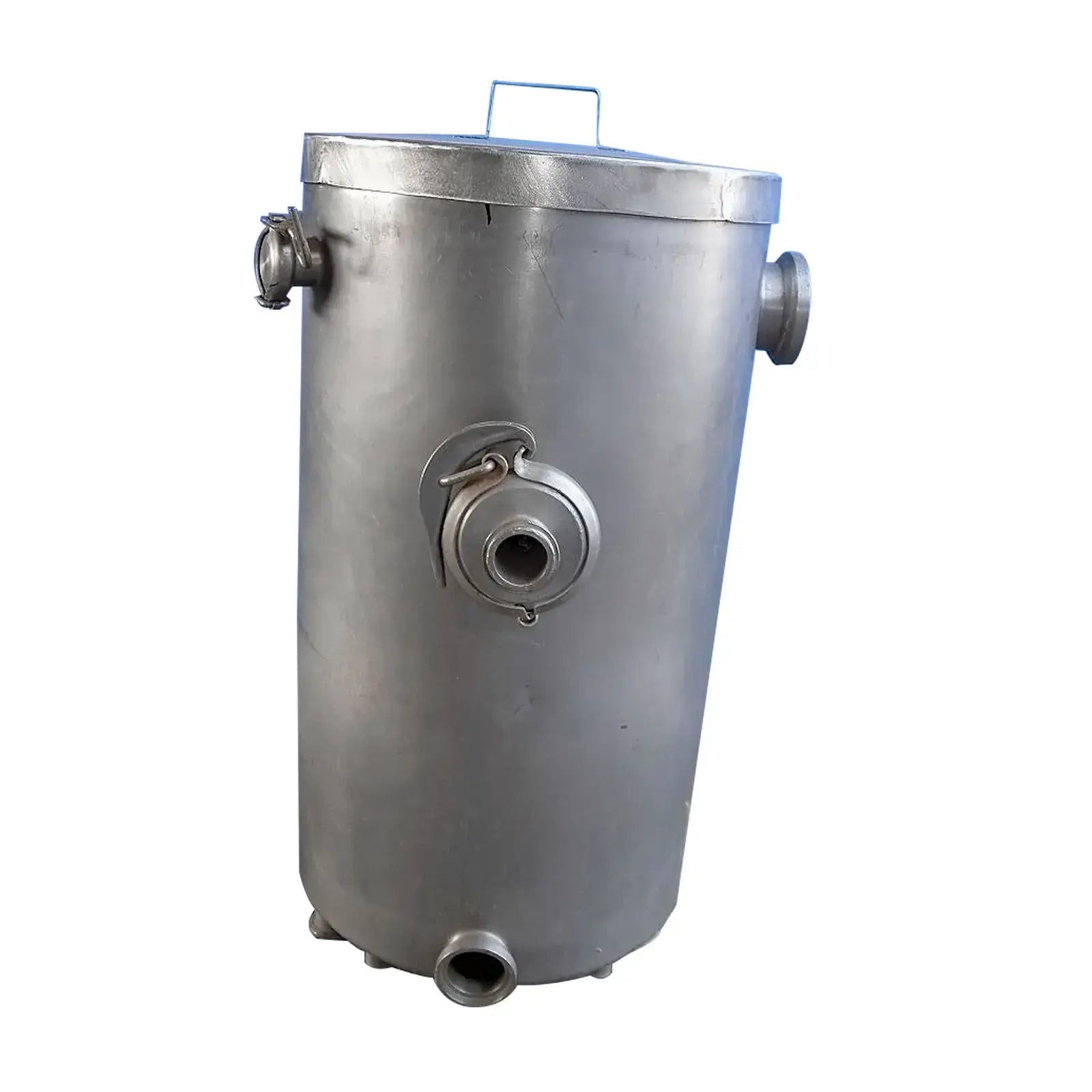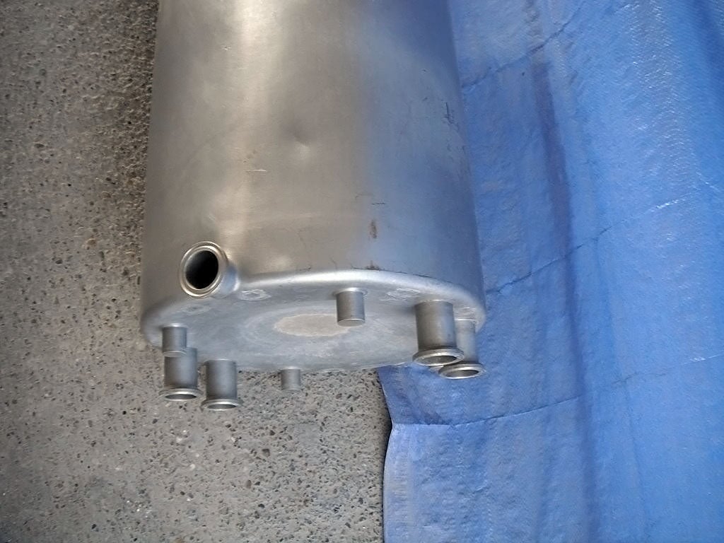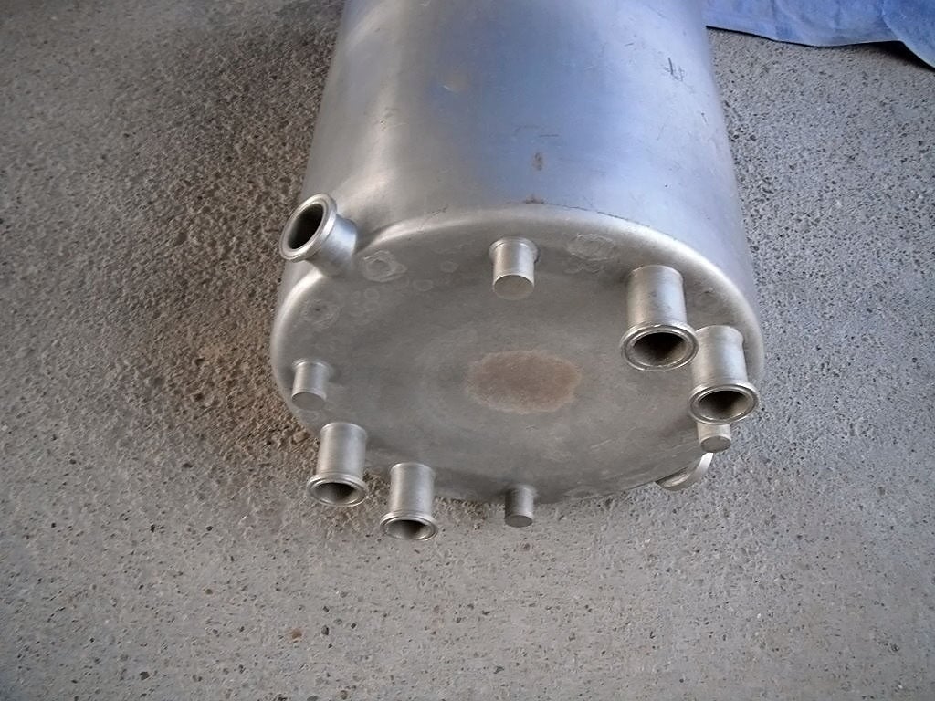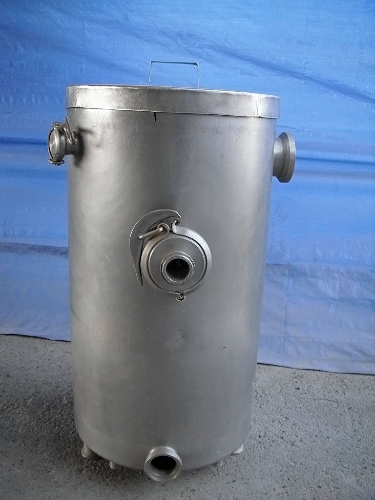 Stainless Steel Single Wall Tank. Inside tank dimensions: 15 in. dia. x 2 ft. 1-1/4 in. straight wall (18 gallons). Inlets/Outlets: (2) 3 in. I-line, (1) 2 in. I-line, (4) 1-1/2 in. Q-line, (1) 1-1/2 in. I-line, (5) 1 in. inner dia. ports. Overall dimensions: 1 ft. 8 in. L x 1 ft. 7-1/2 in. W x 2 ft. 10 in. H.