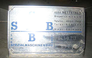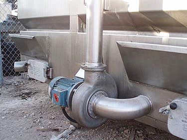 SMB Stainless Steel Cooling Tunnel. Model: 04.1.0.213. S/N: 3325. Maximum aperture/clearance above belt per section: 6 ft. 5 in. W x 9 in. H. Conveyor infeed maximum aperture/clearance: 1 ft. 3 in. W x 12 in. H. Conveyor infeed/exit height: 40 in. (14) 11-1/2 in. W x 6 in. H pan access ports. Sew-Eurodrive Motor (infeed conveyor), 4 hp (3 kW), 1700 rpm, 330/575 V, 7.9/4.55 amps, 60 Hz, 3 phase. Sew-Eurodrive Variable Speed Drive. Sew-Eurodrive Motor (infeed conveyor), 4 hp (3 kW), 1700 rpm, 330/575 V, 7.9/4.55 amps, 60 Hz, 3 phase. Sew-Eurodrive Variable Speed Drive, 9.1 rpm (min), 45.6 rpm (max). SMB Stainless Steel Control Panel, includes toggle switches for: pump controls, conveyor controls, run controls. SMB Centrifugal Pumps. ASEA Motors, 2.0 hp, 1730 rpm, 575 V, 2.5 amps, 60 Hz, 3 phase. (2) Fischbach Compact Fan Blowers. Brook Compton and Teco Electric Motors, 5 hp, 1740 and 1750 rpm, 575 V, 5.4 and 5.04 amps, 60 Hz, 3 phase. Inlets: (1) 1-1/2 in. dia. media port, (1) 2 in. dia. NPT (media), (1) 2 in. dia. flanged port (media), (1) 2-1/2 in. dia. FNPT (media), (1) 3 in. dia. port (cooling media). Outlets: (1) 1 in. dia. NPT (condensate), (1) 3 in. dia. discharge port (media). Overall dimensions: 67 ft. 3 in. L x 19 ft. 2 in. W x 7 ft. 1 in. H.(HB2)(ACN5400).