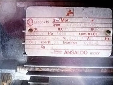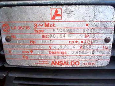 - If Multiple Motors, Motor Descriptions vs specs: (1) 88 hp, (1) 0.6 hp Oil pump with Ansaldo motor and (1) 1.7 hp Ansaldo Blower Motor