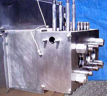 1992 Soavi / Niro Aseptic Homogenizer. Model: D61. Maximum rated capacity: 1450 gph. 2-Stage hydraulic valve assembly. Plunger diameter: 2-1/2 in. Tapered seat poppet valve cylinders. Previously used in the production of milk. Maximum operating pressure: 3625 psi. Pressure and flowrate can be modified / adjusted to suit your needs. Ansaldo Motor, 88 hp. Motor pulley diameter: 6-1/4 in. Gear pulley diameter: 19-3/4 in. Pulley ratio: 3.16. Final speed: 561.7 rpm. Oil pump with Ansaldo motor, 0.6 hp, 1630 rpm, 275/480 V, 1.96/1.1 amp, 60 Hz, 3 phase. Ansaldo Blower Motor, 1.7 hp. Overall dimensions: 7 ft. 7 in. L x 4 ft. 7 in. W x 5 ft. 5 in. H.(ACN977a).