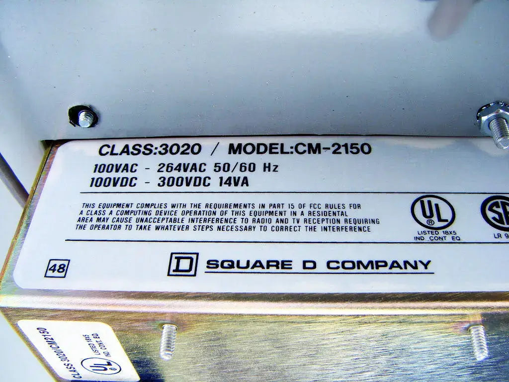 Square D Company Powerlogic Circuit Monitor. Model: CM-2150. AC input: 100 – 264 V, 50/60 Hz. DC Inputs: 100 – 300 V. Overall dimensions: 3 ft. L x 1 ft. 1 ¼ in. W x 2 ft. 3 in. H. (3)