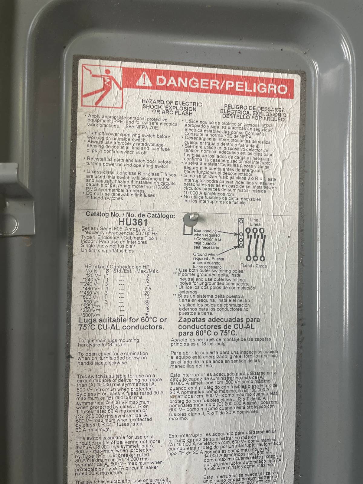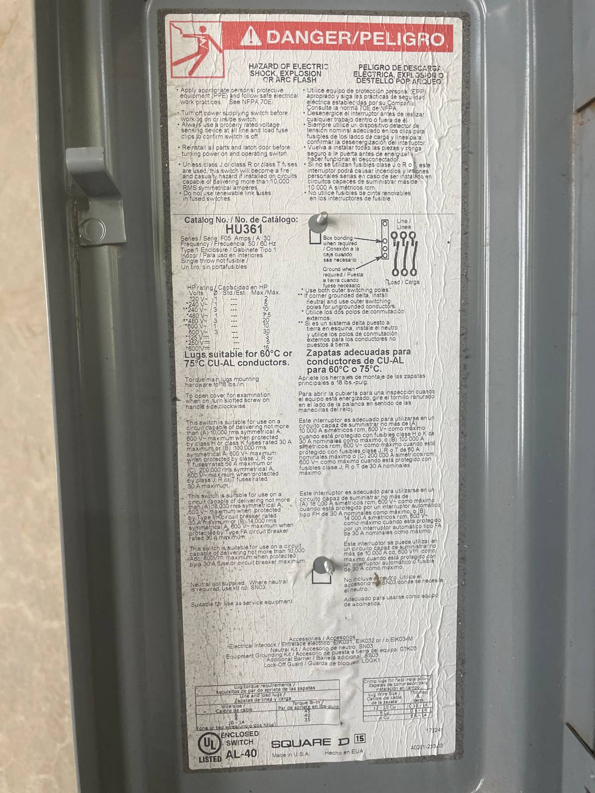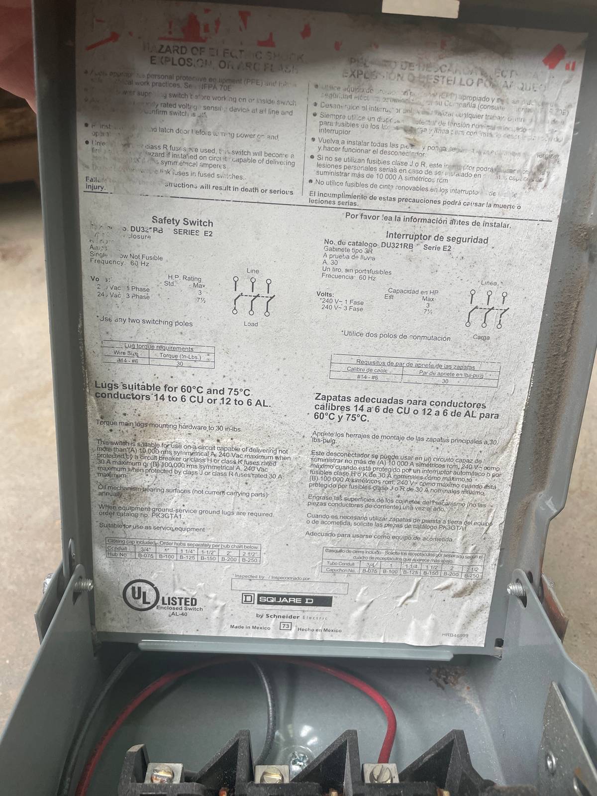 (2) Sqaure D Safety Switch. 30 AMPS, 240 VAC.Catalog No: DU321RB.